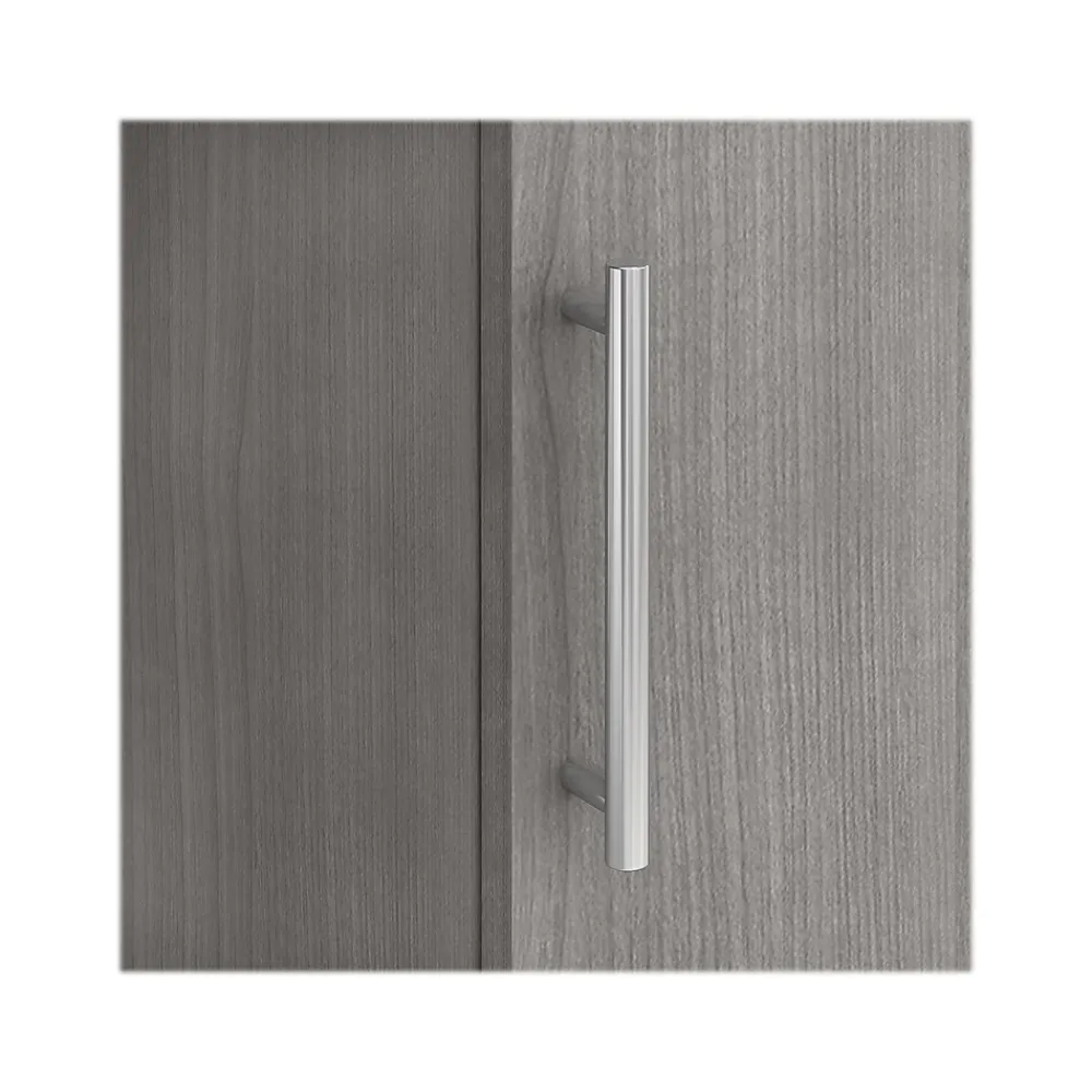 - Laminated over composite wood in a platinum gray finish
