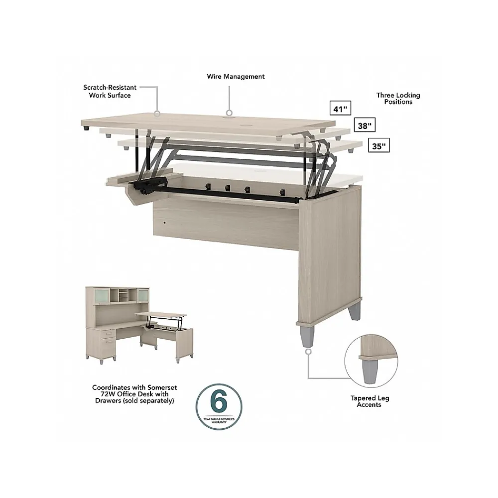L-Desks*Bush Furniture Somerset 72″W 3 Position Sit to Stand L Shaped Desk with Hutch and File Cabinet, (SET016SO) Sand Oak