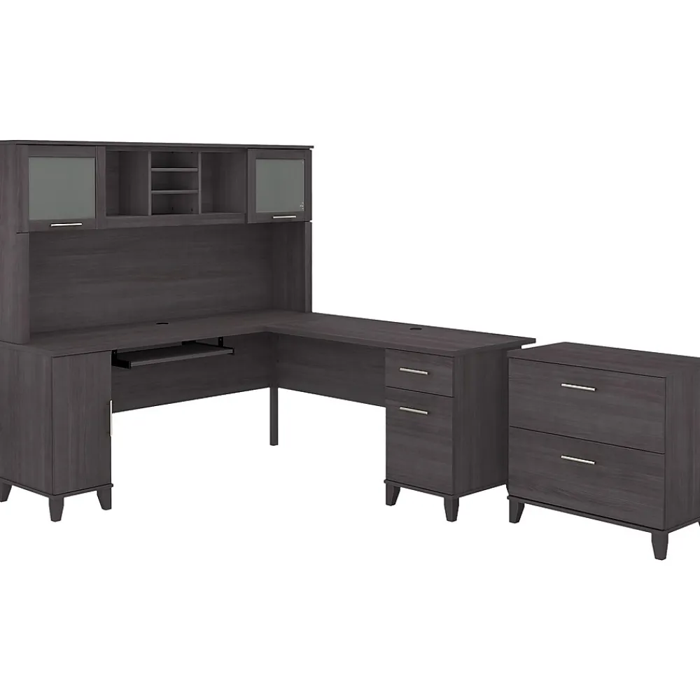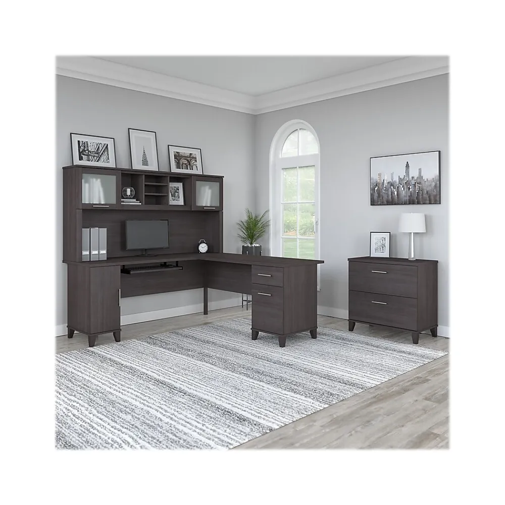 L-Desks*Bush Furniture Somerset 72″W L Shaped Desk with Hutch and Lateral File Cabinet, (SET009SG) Storm Gray