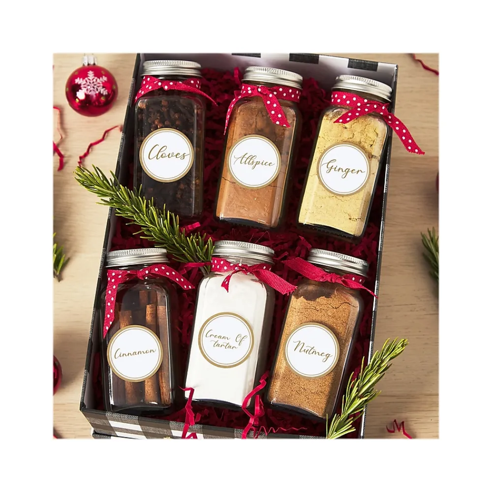 - Add an elegant touch to product branding, party favors, gift tags, mailing seals and more with eye-catching matte white labels with metallic gold borders