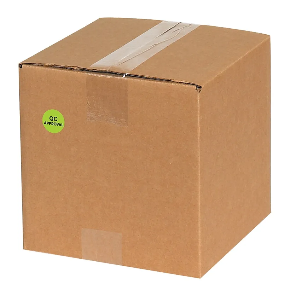Tape Logicâ„¢ 1″ “QC Approval” Labelin fluorescent green color is printed with black color text. Label in circular shape has pressure sensitive adhesive for quick attachment on any surface, sold as 500 per roll.