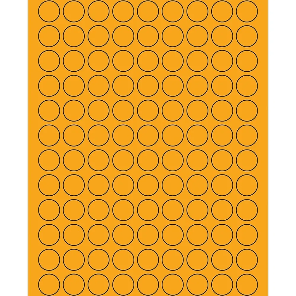 3/4″ Fluorescent Orange Circle Laser Labels. Use to create your own product or mailing labels. Labels work with both laser and ink jet printers. Permanent adhesive. Labels stick to a variety of smooth surfaces including paper, corrugated, plastic, wood, glass and metal.