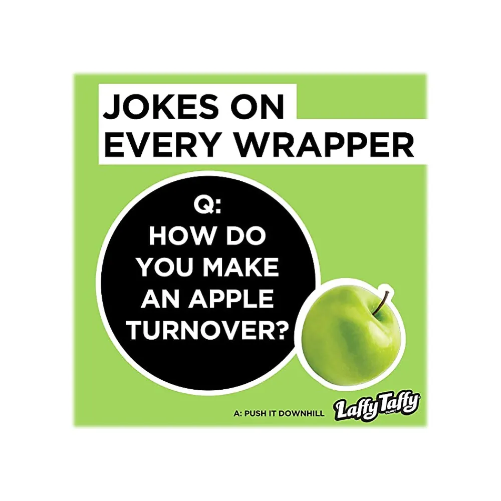 The deliciously fruity Laffy Taffy is known for its authentic long-lasting fruit flavor, chewy texture, and whimsical jokes on every wrapper. The Laffy Taffy recreates the classic taste in a fun, munchable bite that delivers laughs from the first bite to the last. Stretchy, bendy, and seemingly never-ending, Laffy Taffy treats taffy lovers to fruity-sweet happiness at home or on the go. Featuring sour apple, cherry, strawberry, and banana flavors.