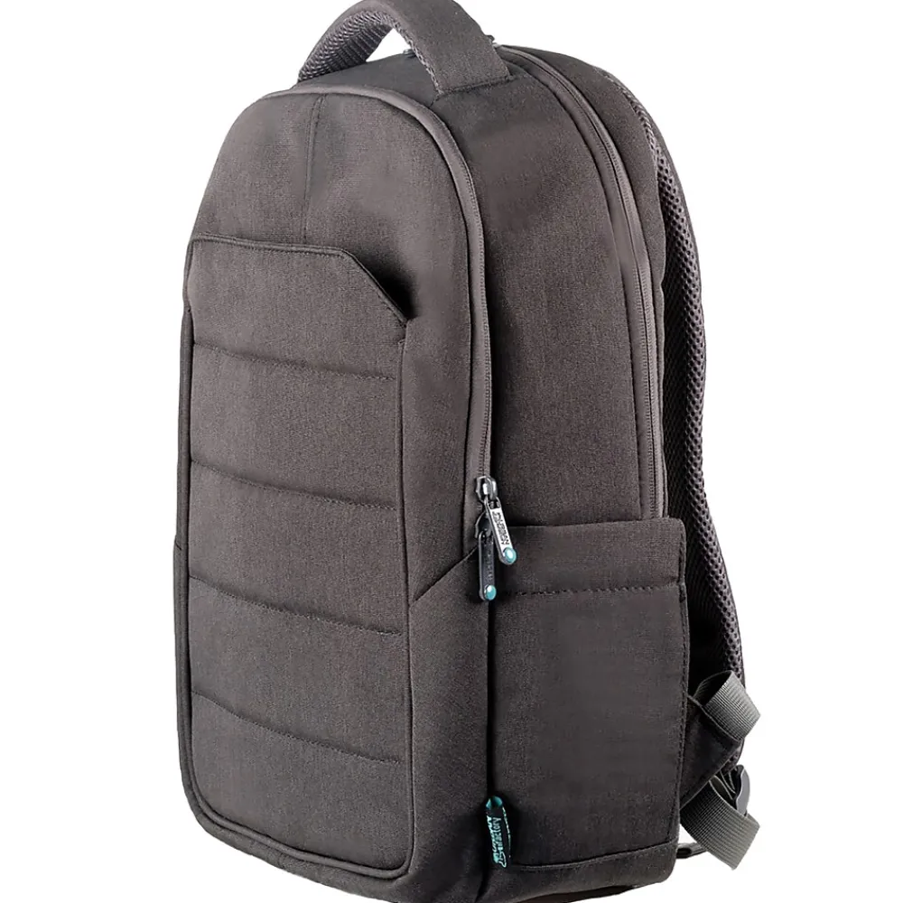 The GREENEE Dual-Compartment Backpack for 15.6-In. laptop computers from Urban Factory has a high-density, foam-reinforced compartment for a laptop computer up to 15.6 in. A second compartment is for your accessories and personal items for excellent load capacity. The GREENEE features a front flat pocket and 2 expandable side pockets for lots of space and quick access to an umbrella or bottle. The water-repellent material and robust design will make this backpack your best day-to-day ally. It is made of r-PET, a material resulting from the recycling of plastic bottles, in order to preserve our environment as much as possible.