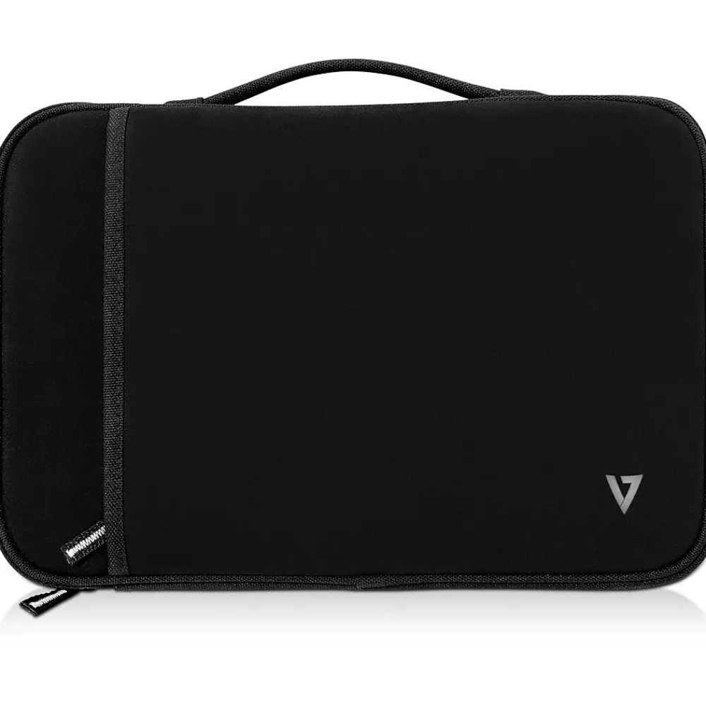 The V7 12.2″ Neoprene Sleeve with a self-retracting handle allows you to easily carry your MacBook Air or any other Chromebook up to 12.2″ or slip it into another bag for even more storage. It features a detachable shoulder strap and ID holder, perfect for students. With a form-fitting design, the sleeve protects your laptop in style, plus the durable top and side-pocket zippers provide easy access to your device and accessories. The Sleeve’s exterior neoprene and soft fleece interior materials cushion and protects your equipment so you can be sure your laptop is safe while you’re on the go.