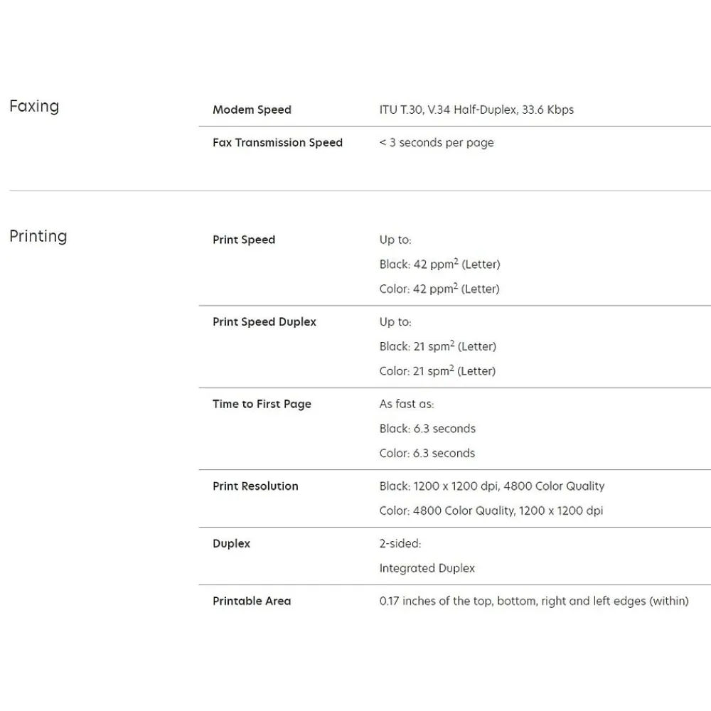 | Color Print Speed Borderless printing allows you to print to the edges of a piece of paper without any white border or margin visible. | No Borderless Printing |