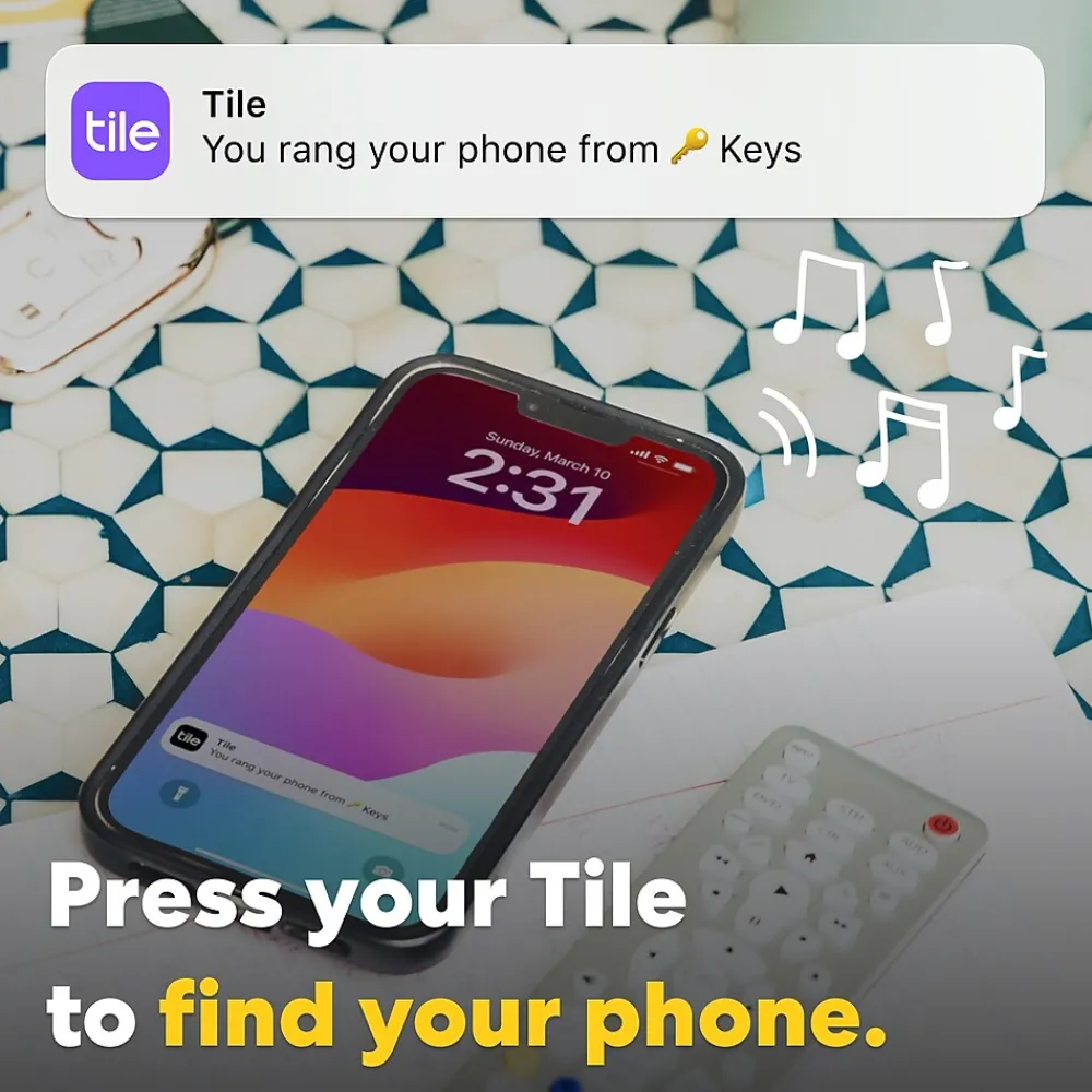 - Find your phone – Phone hiding under a cushion? Use your Tile to make it ring — even when silenced.
