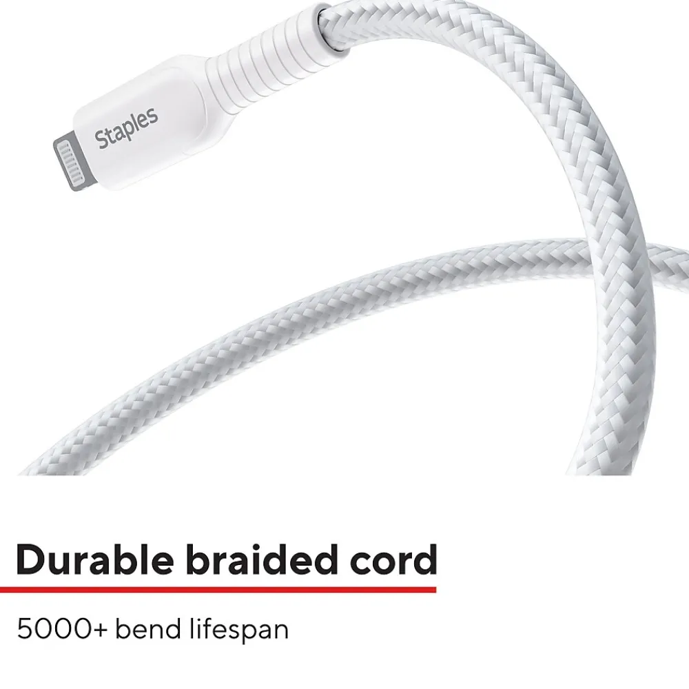 Lightning to USB-A Charging Cable, 6.6 ft., White (ST62331)<Staples TECH