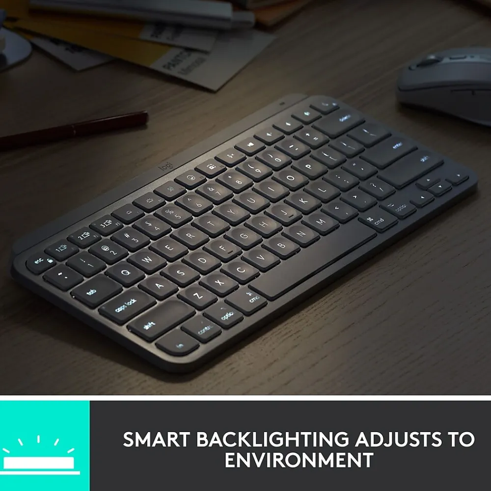 Introducing MX Keys Mini – a smaller, smarter, and mightier keyboard made for creators. Type with confidence on the keyboard crafted for efficiency, stability, and precision. The ergonomic design aligns your shoulders, allowing you to place your mouse closer to your keyboard for less arm reaching, more comfort, and improved body posture. Easily pair MX Keys Mini via Bluetooth Low Energy with up to three devices. Smart keys (requires Logitech Options software, available for Windows and macOS) transform the way you work, with a dictation key to talk-to-text with the press of a button, an emoji key to instantly open your emoji window, and a microphone mute/unmute button for smooth video calls. Team up with a Flow-enabled MX Master 3 or MX Anywhere 3, and type on multiple devices in one fluid workflow. Transfer files, documents, and images across computers and macOS and Windows. Not compatible with Logitech Unifying receiver technology. The dictation feature is provided by Windows and macOS and is currently only available in select languages and geographies. Learn more at Logitech Support OS dictation.