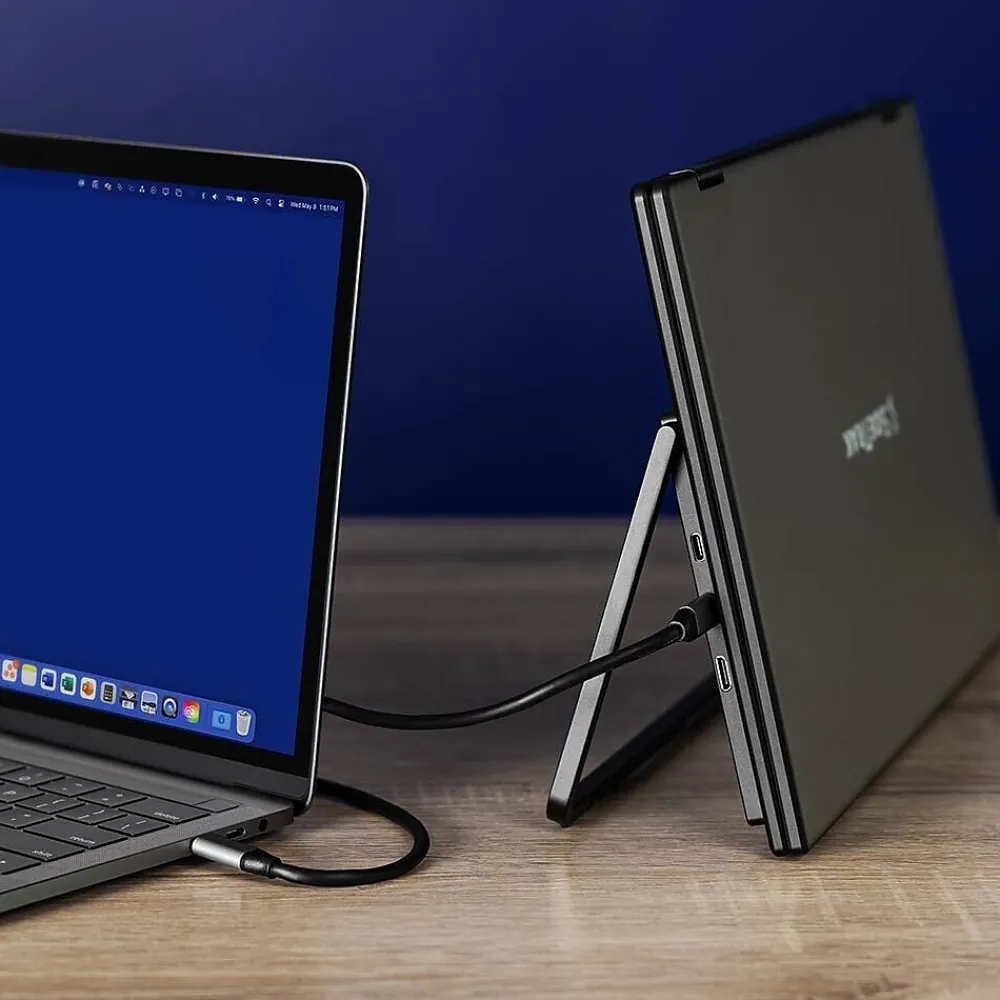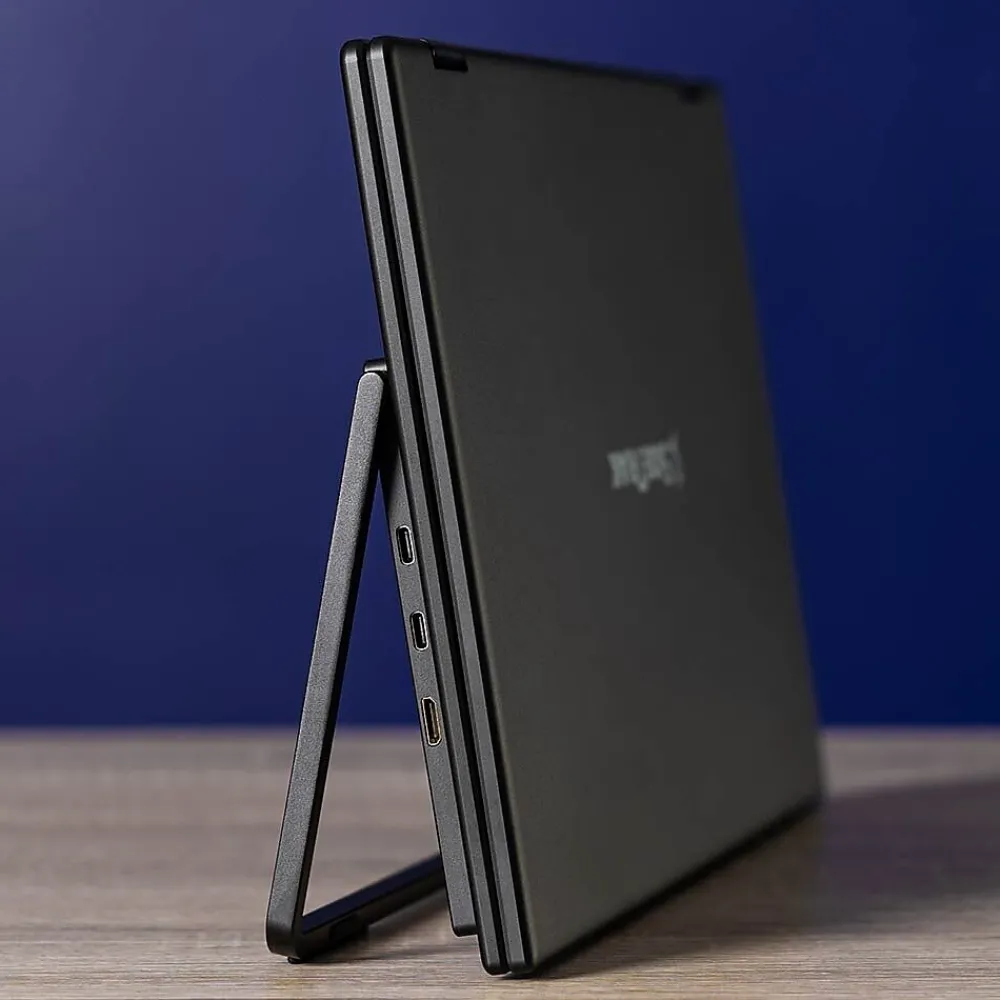 Effortlessly triple the screens of any laptop while minimizing your physical workspace with the SideTrak Solo Book, enabling enhanced comfort and efficiency from wherever you choose to work. With an ergonomic, vertically stacked dual-screen design, you can reduce neck and eye strain and enhance your workflow efficiency while saving valuable desk space. Adaptive and versatile, the Solo Book also features 315-degree rotation for a comfortable viewing experience and easy collaboration. Designed to be effortlessly stowed in your bag, the SideTrak Solo Book includes a hinge that allows you to fold the monitor flat and a neoprene protective sleeve to keep your monitor safe when traveling.