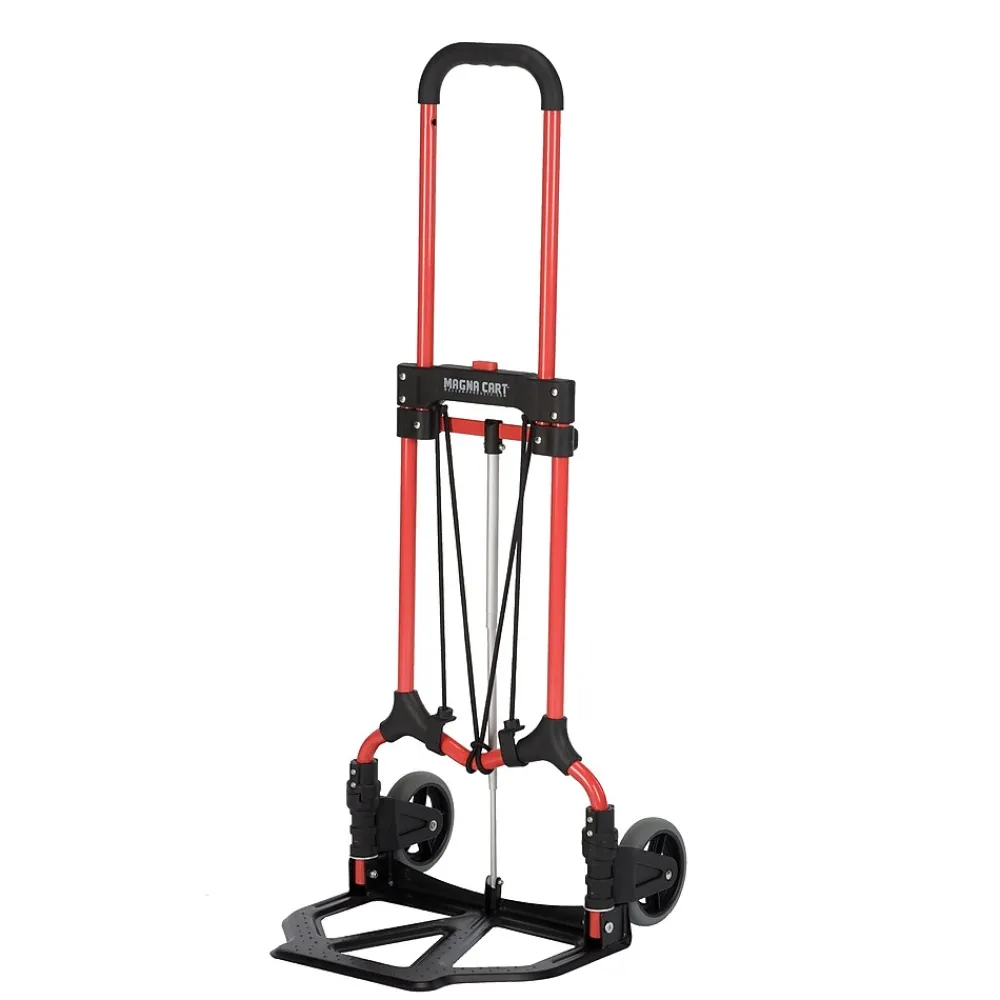 The Magna Cart Folding Steel Hand Truck is perfect for moving heavy boxes or bulky items safely and easily. With a weight capacity of 160 pounds, this hand truck is ideal for use in businesses or offices.
