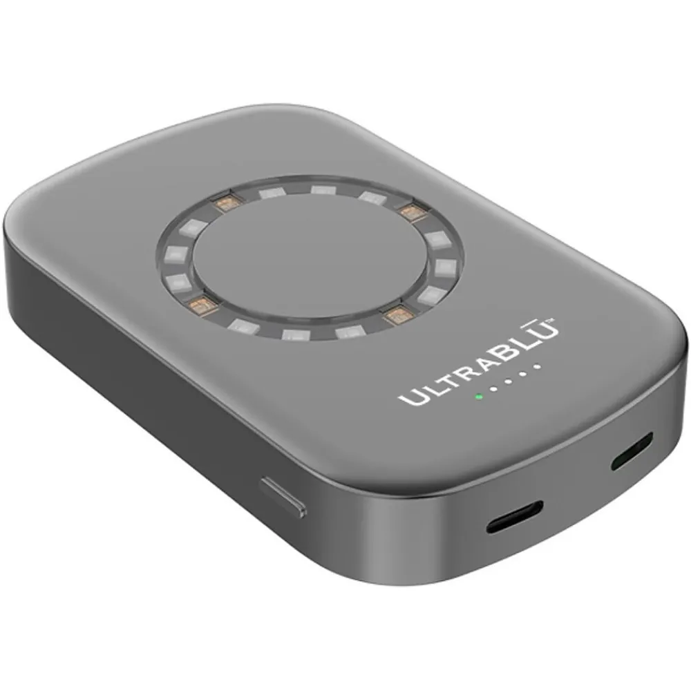 Charge your phone and sanitize any surface in under 10 seconds with this UltraBlu sustainable power bank. UV-C LEDs emit a specific wavelength of light that penetrates the cell walls of pathogens, disrupting their genetic material and preventing replication. This mechanism of action makes the UltraBlu highly effective in eliminating harmful microbes from various surfaces, including smartphones, keys, door handles, and more. With ongoing research indicating the efficacy of UV-C light against the SARS-CoV-2 virus, responsible for COVID-19, the UltraBlu emerges as a vital tool in the fight against infectious diseases. Additionally, the UltraBlu doubles as a phone charger, providing an added layer of utility for users on the move. Simply attach your phone to the UltraBlu, and it will charge wirelessly using MagSafe technology. Perfect for travel, outdoor activities, and daily use, the UltraBlu offers unparalleled versatility and peace of mind in today’s fast-paced world. Ditch the bulky sterilization devices and tangled charging cables.