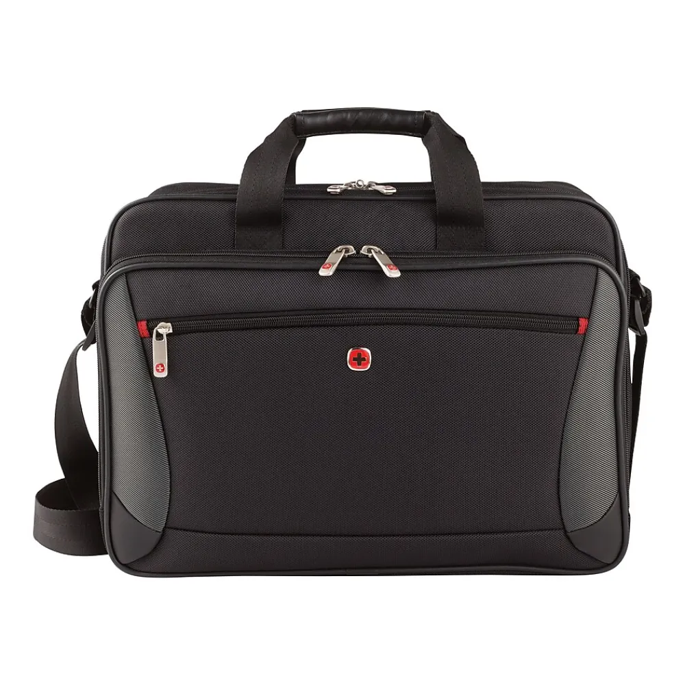 The Wenger? Victorinox Swiss Army 15.4″ black comet computer case features comp-u-flex computer pockets, accessory pockets, quick pocket, file pockets and business organizer to store all your things. It has reinforced ergonomic handle and tear resistant shoulder strap for easy carrying. This computer case fits most 15.4″ notebooks.