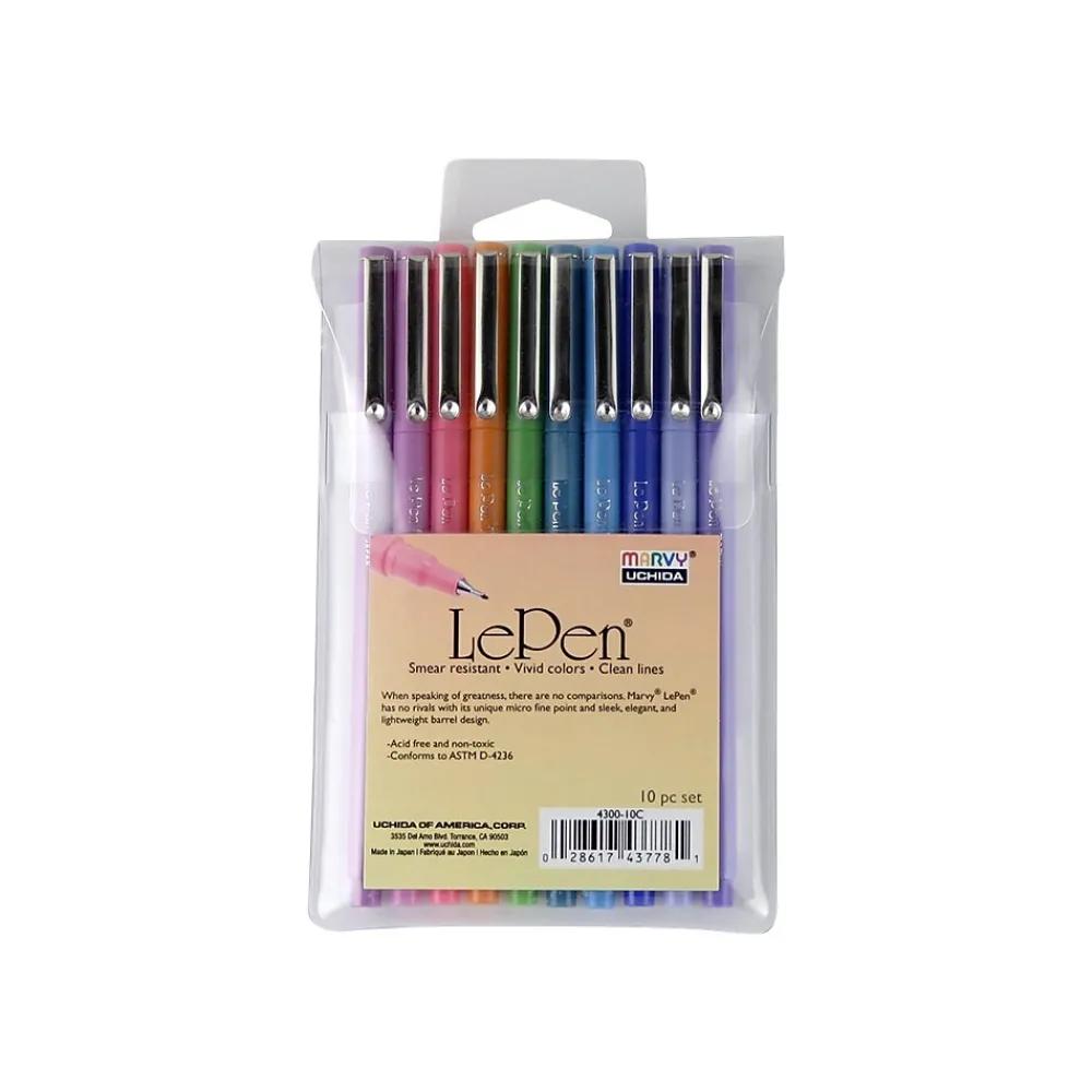 Markers|Marvy Uchida LePen Set C Permanent Marker, Micro Fine Tip, Assorted Inks, 10/Pack (430010C)