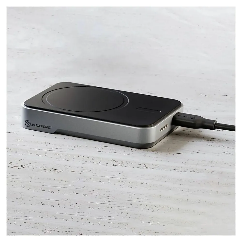The magnetic power bank’s generous 5,000 mAh battery has enough juice to recharge your phone, earbuds and smartwatch from 0 to 100%.
