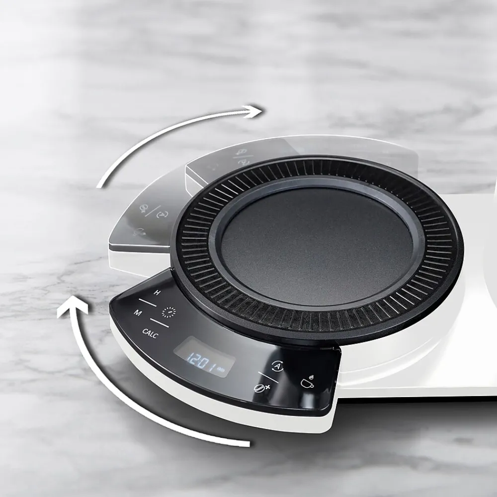- Revolving dashboard allows the coffee maker to be placed in different orientations on the countertop. Designed for left and right-handed person.