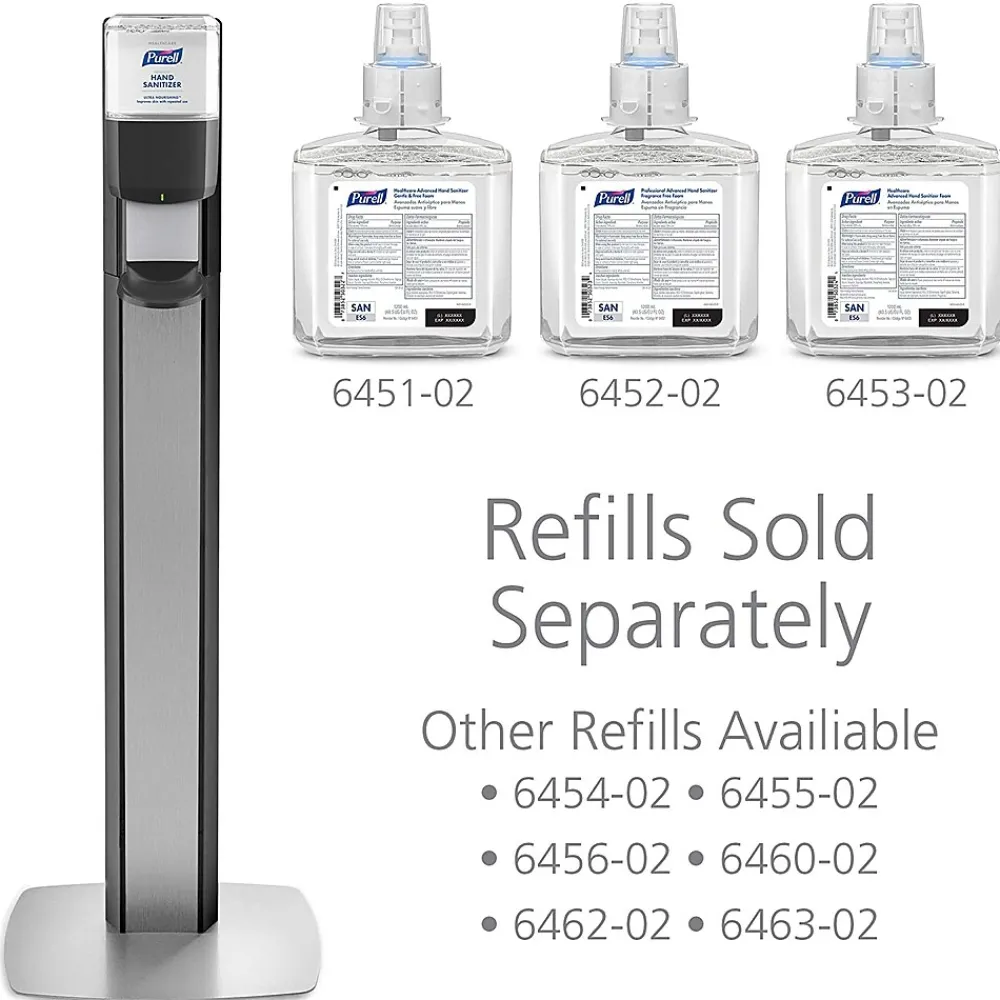 - The included PURELL® Automatic ES6 Hand Sanitizer dispenser uses PURELL® ES6 1200 mL Hand Sanitizer refills (6451-02, 6453-02, and 6463-02) that are sold separately.