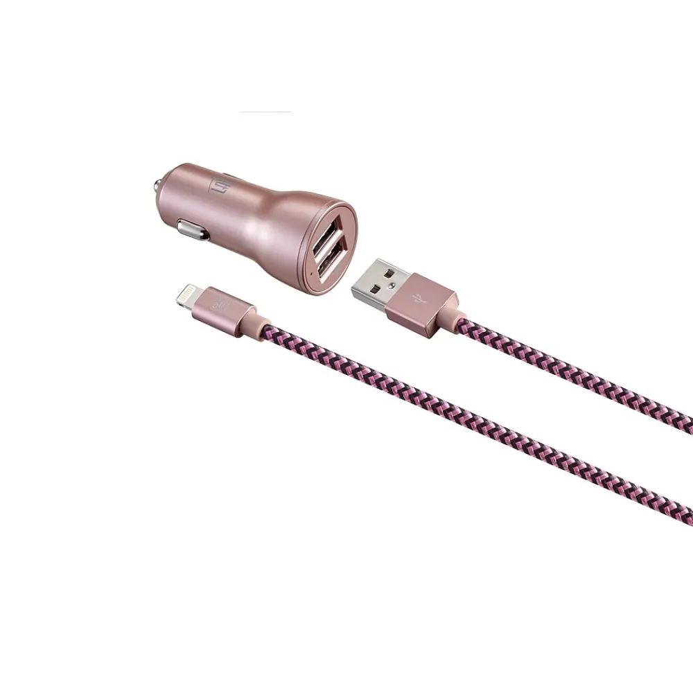LAX Apple MFI Certified 6ft Braided Cable With Car Charger. Nylon Braided Cable with Car Charger Adapter.