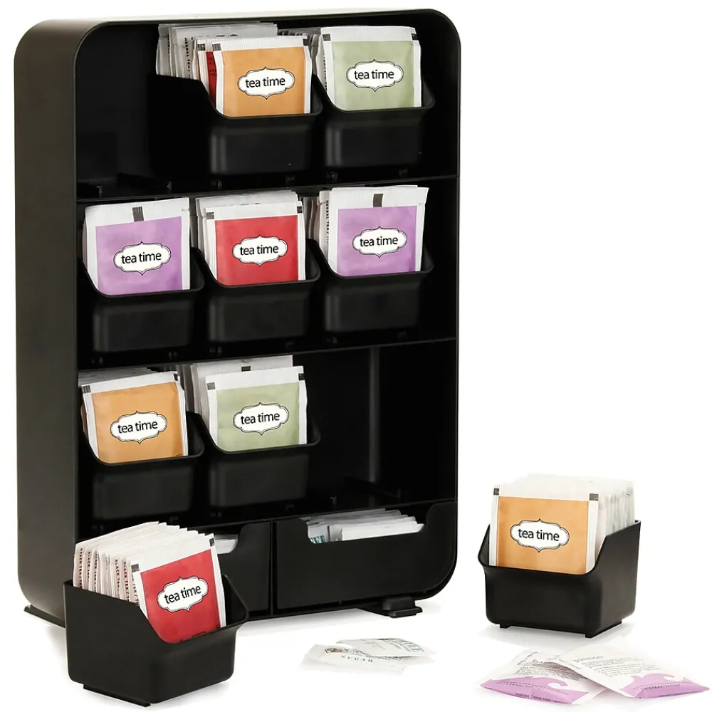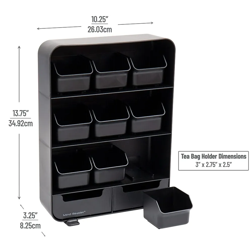 - Customizable tea storage: With nine drawers specifically designed for tea bags, you can categorize them by flavor, brand, or caffeine content. Additionally, two extra bottom drawers offer space for sweeteners, stirrers, and creamers