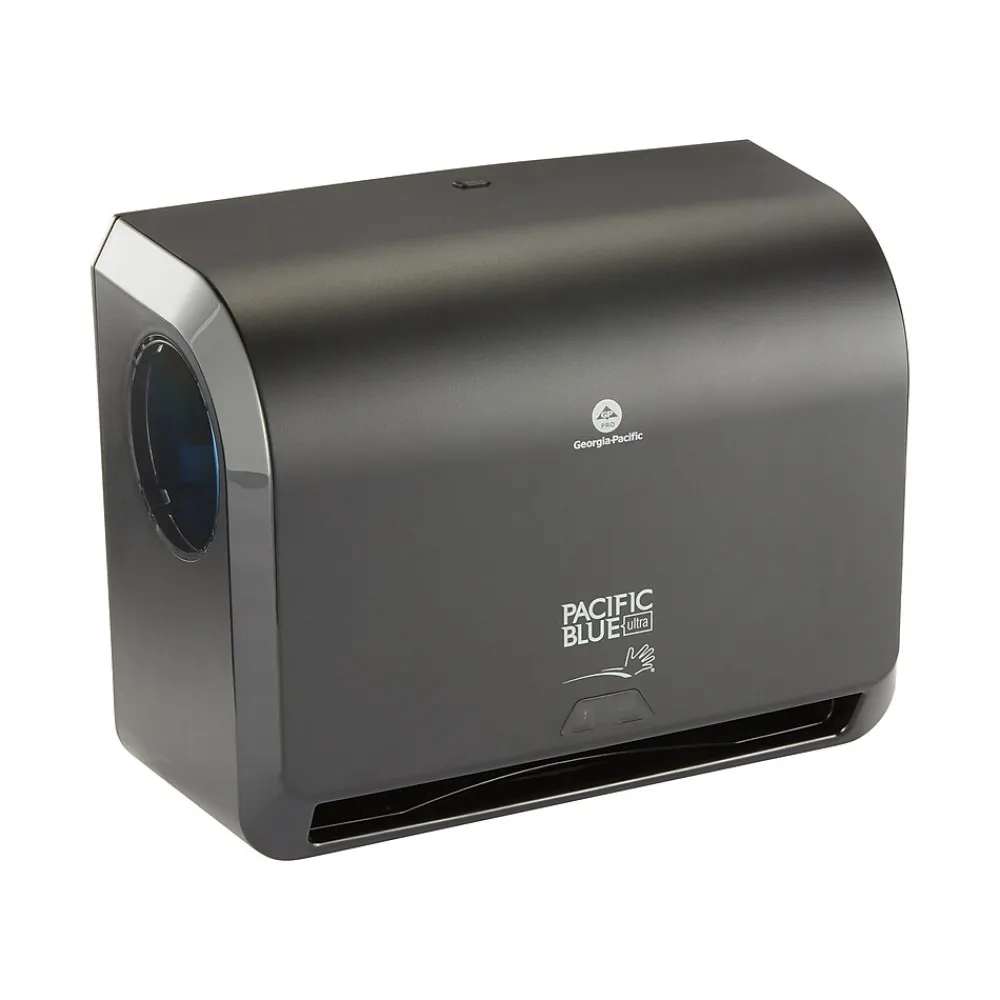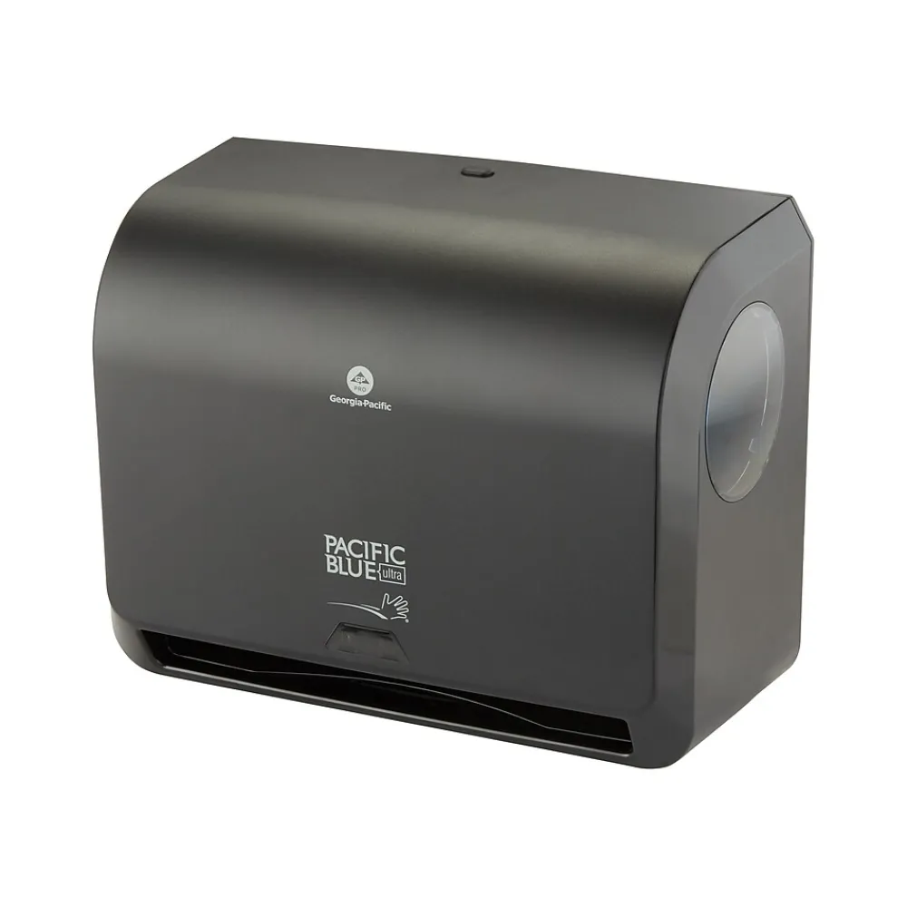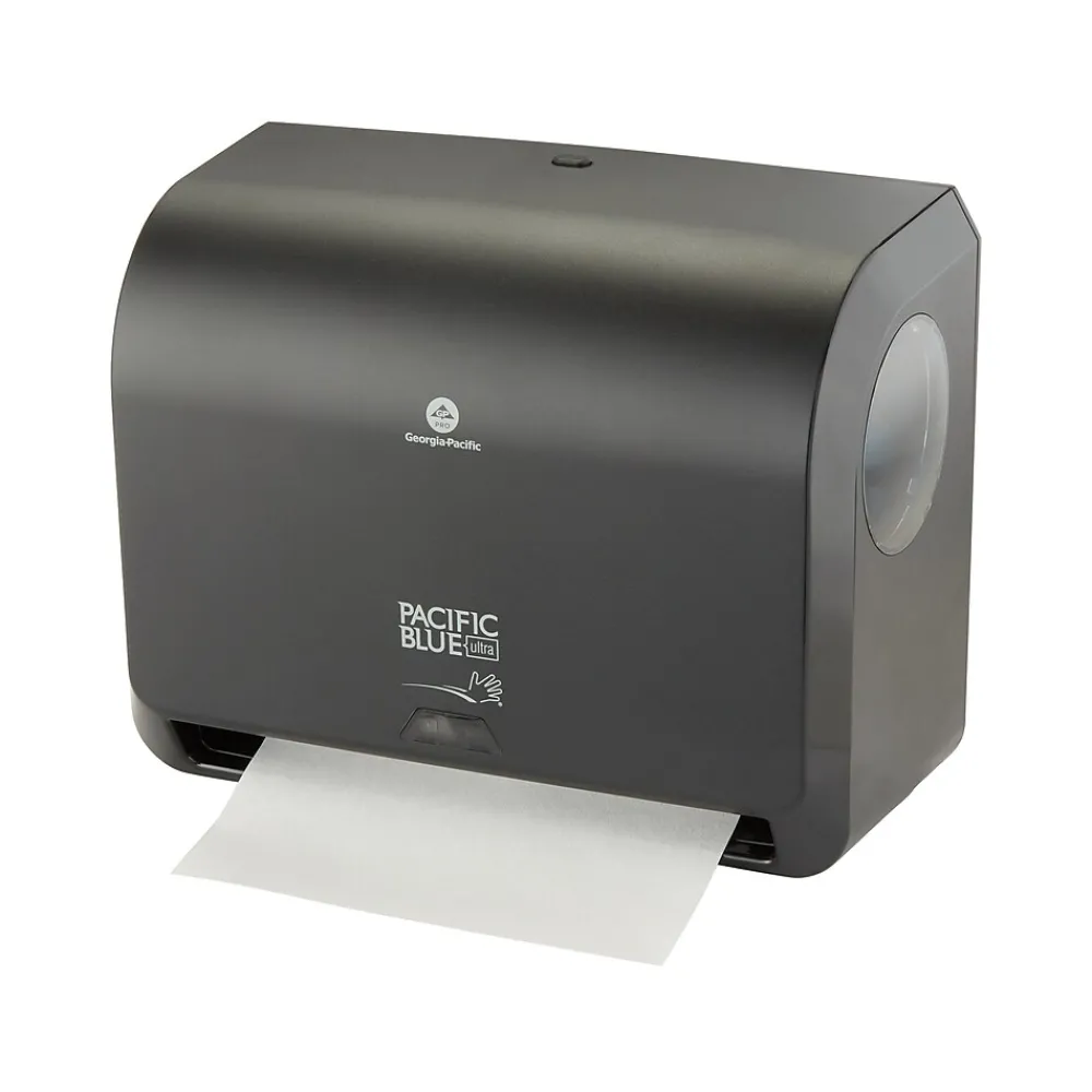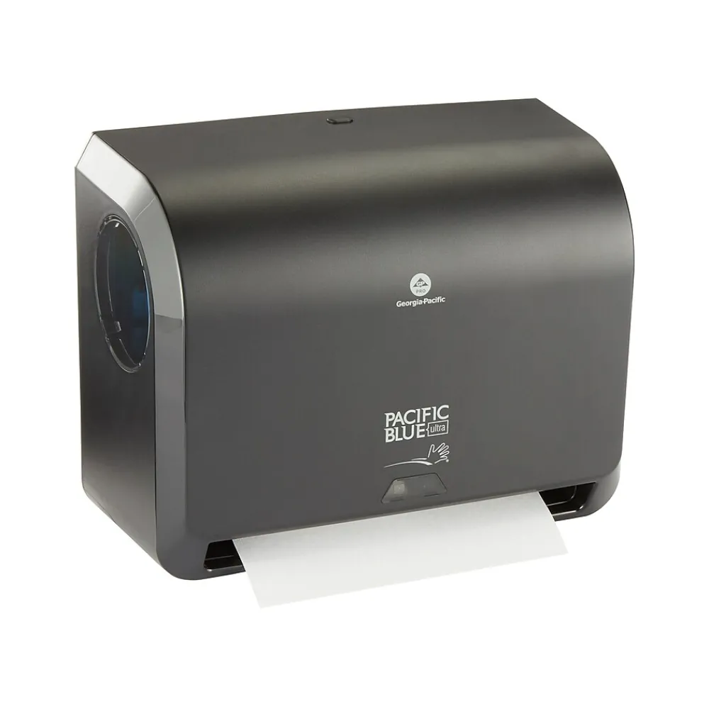From the makers of enMotion products comes the Pacific Blue Ultra Mini automated paper towel dispenser. Designed to fit in small spaces, this automated dispenser features motion activation and touch-free, one-at-a-time enclosed dispensing so you only touch the paper towel you use. That helps cut down on germ transmission and helps reduce waste. Unlike folded towels, customers can’t grab stacks of dispensed towels, so they’re less likely to end up all over the floor.