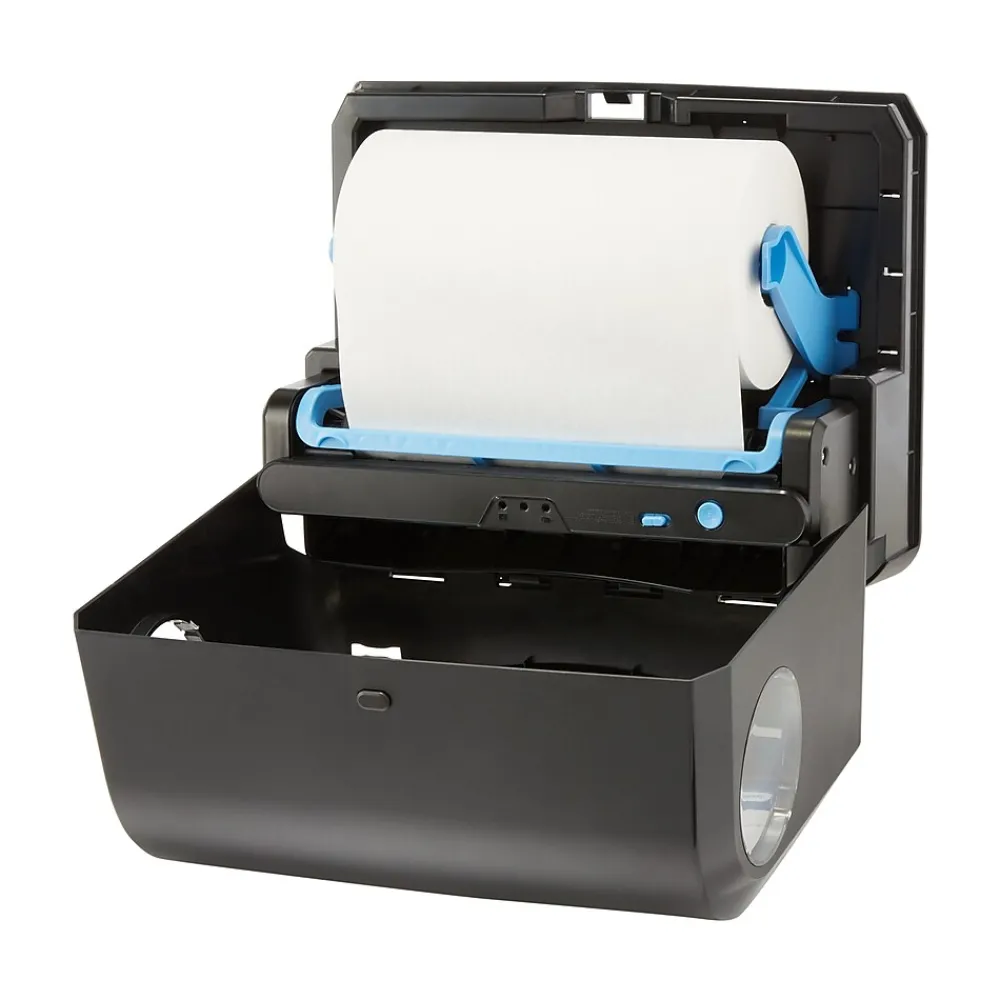 - Automatic towel dispenser for drying hands or cleaning up messes