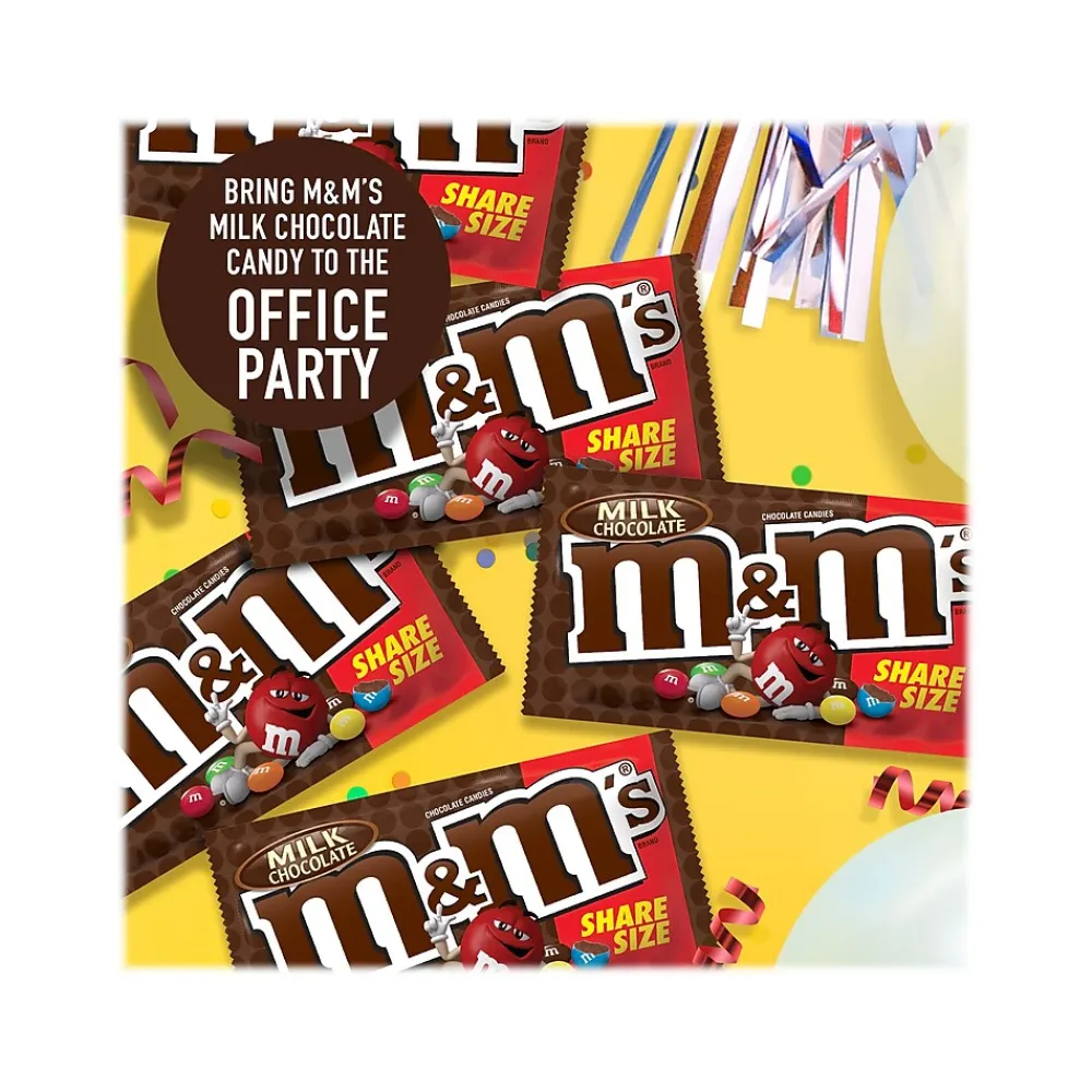 Pop this chocolate candy in your mouth for a quick snack. Each piece has a colorful candy shell for a fun, mess-free experience. With 24 individually wrapped share-size pouches, this box of M&M’s king-size milk chocolate candies is great for stocking vending machines and break rooms.