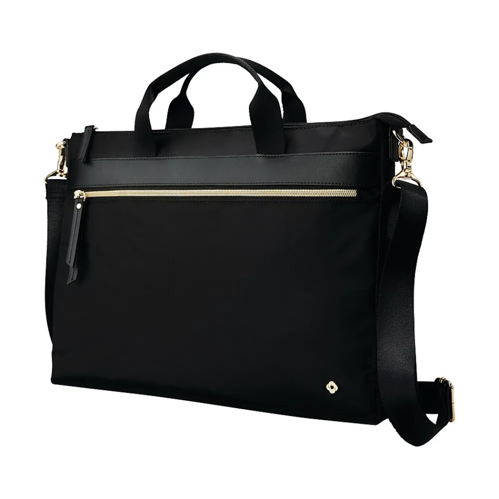 A comprehensive offering of travel and lifestyle essentials, the Samsonite Mobile Solution collection features superior functionality in timeless, lightweight styles. Slim and sophisticated, this multitasking brief offers an elegant alternative to the typical laptop bag. Carry handheld or add the strap to go hands-free as a cross-body or shoulder bag: this versatile style is the perfect choice for those who love options. Nylon fabric with vinyl trim and water-resistant coating.