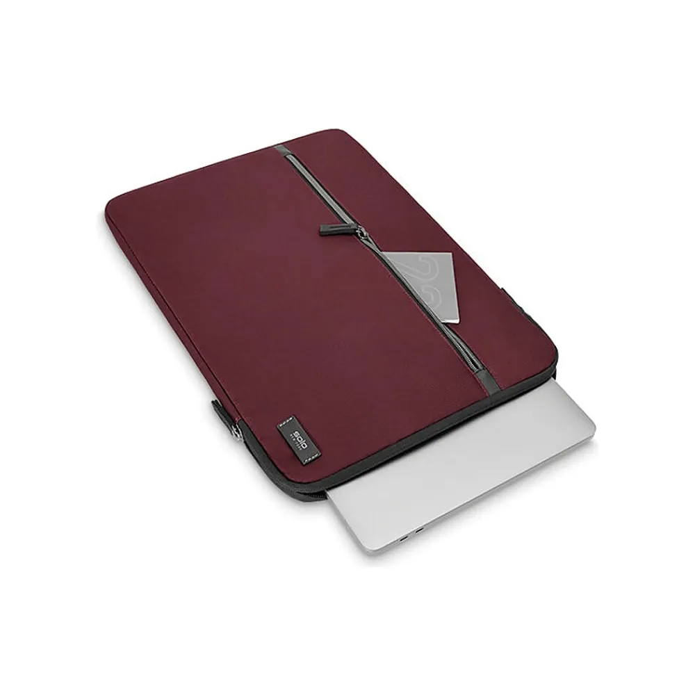 Stylishly protect your laptop with the Solo New York Mott sleeve. This laptop sleeve exudes timeless, urban cool red. Staying true to Solo’s signature DNA, the Mott fuses fashion and function with protective padding and a scratch-resistant lining. This recycled laptop sleeve not only helps eliminate plastic bottles from landfills, but all the tags, strings, and stuffing are made from 100% recycled and biodegradable materials.