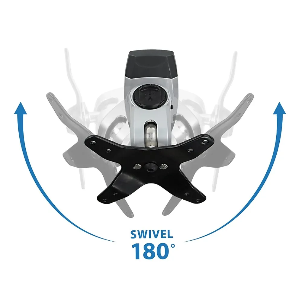 - Each monitor can swivel 180 degrees and rotates 360 degrees