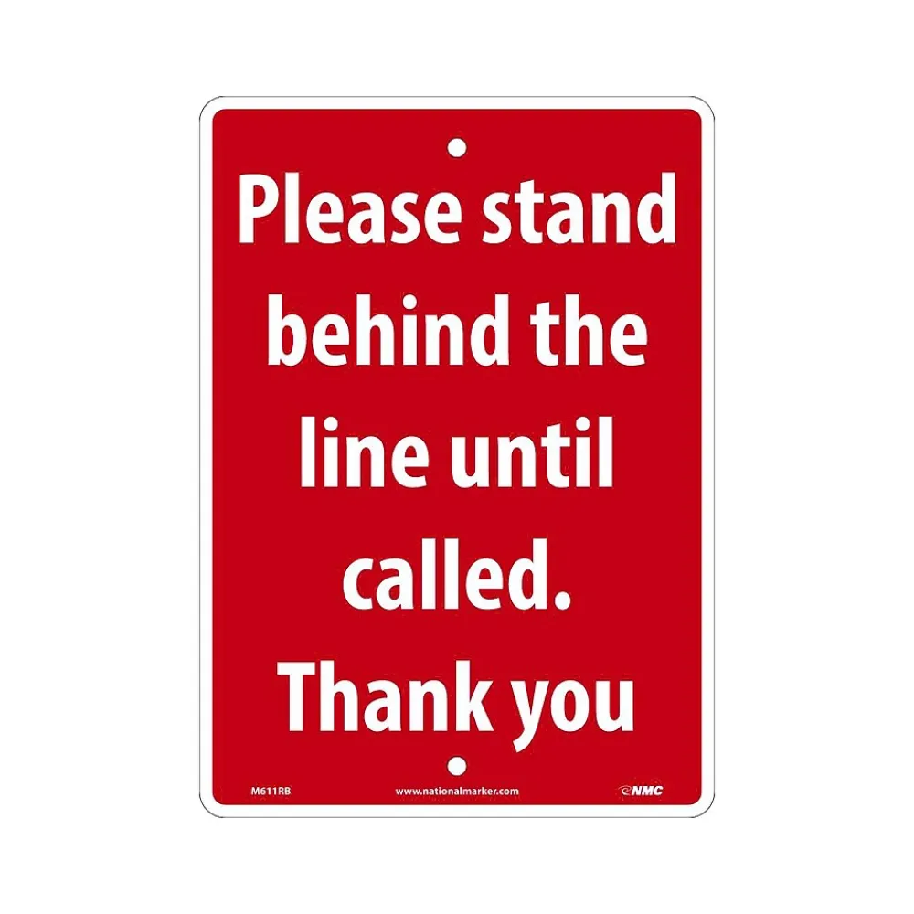 National Marker social distancing floor signs and other crowd control products help customers in public areas, such as check-out lines, maintain their personal space. Made of 0.05″ thick polystyrene material which is great for long-lasting indoor or outdoor use, the sign is standard with radius corners and predrilled corner mounting holes.
