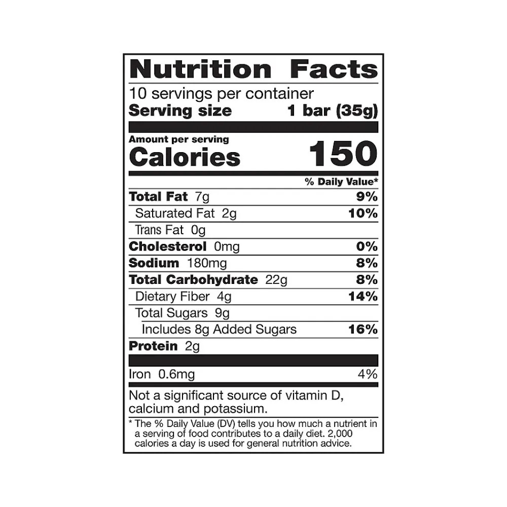 - Dozen muffin bars per box; serving size: one bar (150 calories)