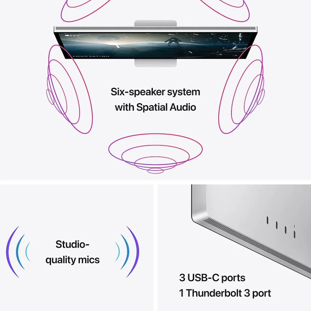 - What’s in the Box: Studio Display with standard glass and tilt adjustable stand, Thunderbolt cable (1 m)