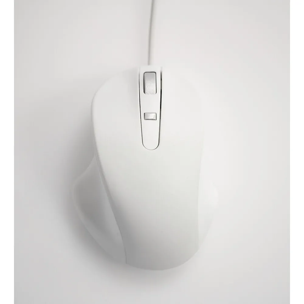The Matias Wired PBT Mouse features a premium type of plastic called PBT, which feels better to the touch, and doesn’t yellow over time like the cheaper ABS plastic used in most other mice. The higher quality materials extend to the scroll wheel and top button as well, as they are made of aluminum. Inside is premium grade hardware, including OMRON switches and a TTC encoder, for a great mouse experience. There are 4 mouse buttons (left, right, scroll wheel, and top button). The mouse has a fixed, hardwired USB cable with a USB-A connection.