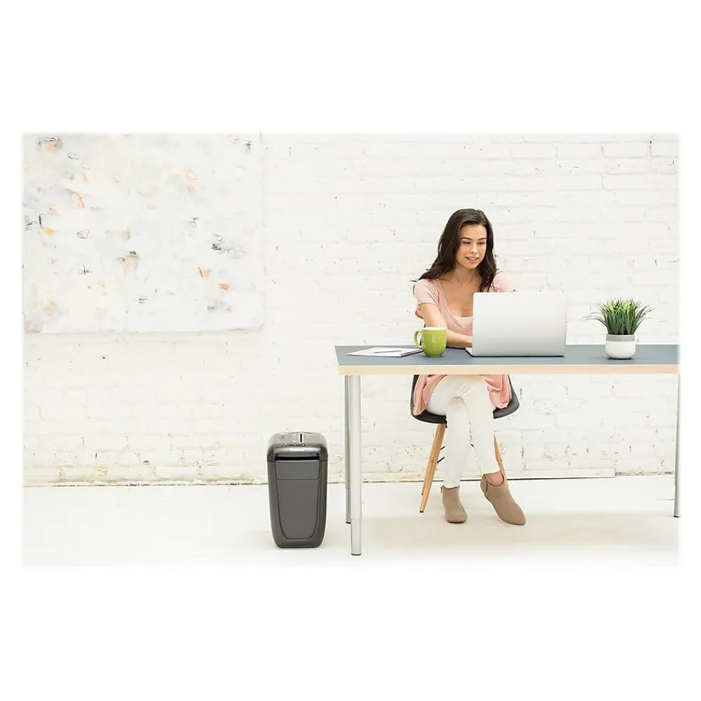 Dispose of sensitive information with this cross-cut shredder. With a 6-minute continuous run time, this shredder handles 10 sheets per pass and also destroys staples, paper clips and credit cards for extra flexibility. Built-in SafeSense technology protects users by automatically stopping the blades when hands touch the paper opening, and the 6-gallon bin securely holds shreds. This Fellowes Powershred cross-cut shredder cuts paper into approximately 400 particles per sheet, ensuring papers are almost impossible to recover.