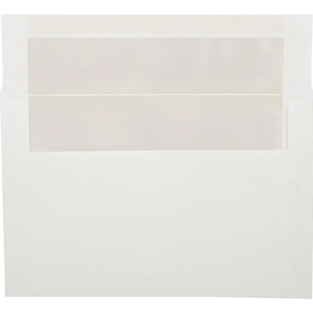 JAM PaperĀ® White with Ivory Foil Lining Invitation Envelopes measure 5.75 x 8.75 inches in size and are made out of smooth, 24lb paper. This pack contains a total of 50 envelopes. Each one features a clean and simple white color and a shiny silver lining on the inside! These booklet style invitation envelopes have straight flaps and reliable gum closures to keep items secure as they travel through the mail! Use these versatile and elegant envelopes to mail invitations and greetings for any kind of special occasion! They are and excellent choice for mailing holiday greetings, invitations to your Christmas party, wedding invitations, and more!