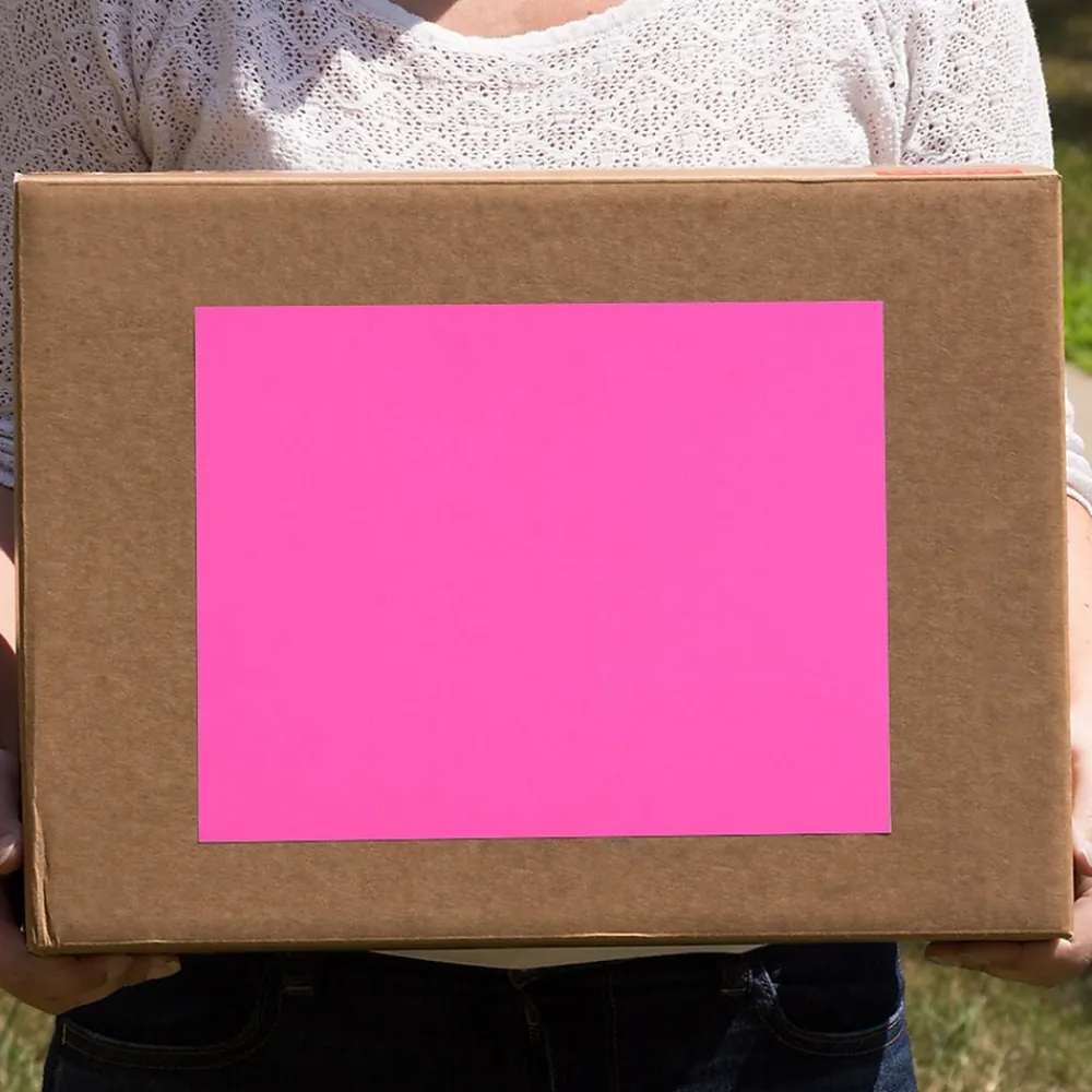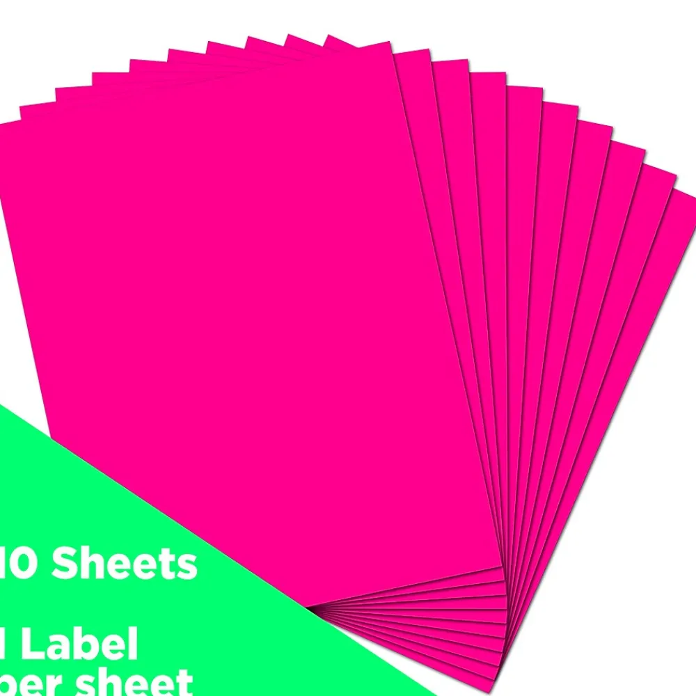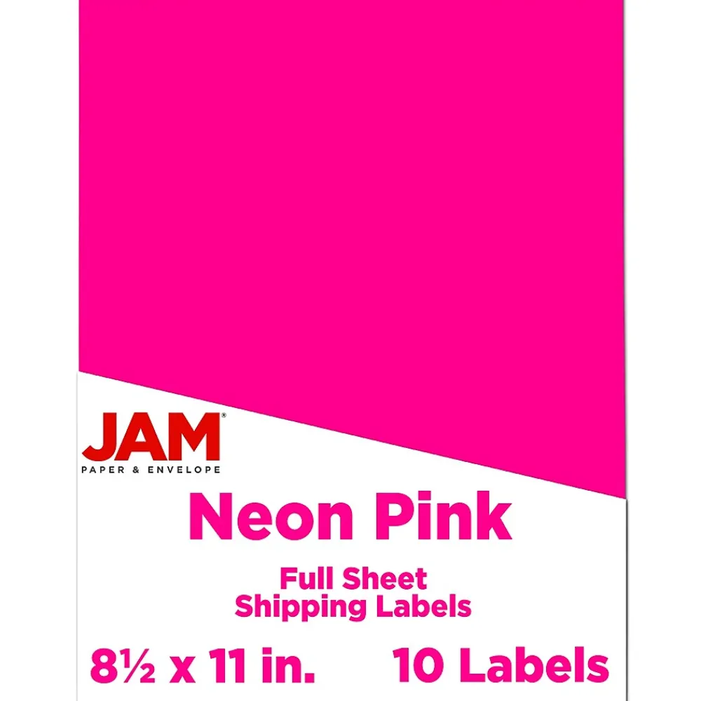 With an eye catchy neon pink color and a brightness rating of 50, the JAM Paper Neon Pink Large Full Page Labels can easily transform the looks of any standard packages or mails. It measures 8.5 x 11 inches, allowing you to add all the required information with utmost convenience. The labels are made from 30% recycled material, making them a greener alternative to the traditional paper labels. They are also compatible with Microsoft Word templates, to allow you to easily personalize them according to your requirements. or offices. They are made from 30% recycled paper, making them a greener solution to all your labeling and organizing requirements. The labels are printer friendly, making them a time-saving accessory. They also feature adhesive back panel, which elimin ates the need of using glues or masking tapes to stick the labels.