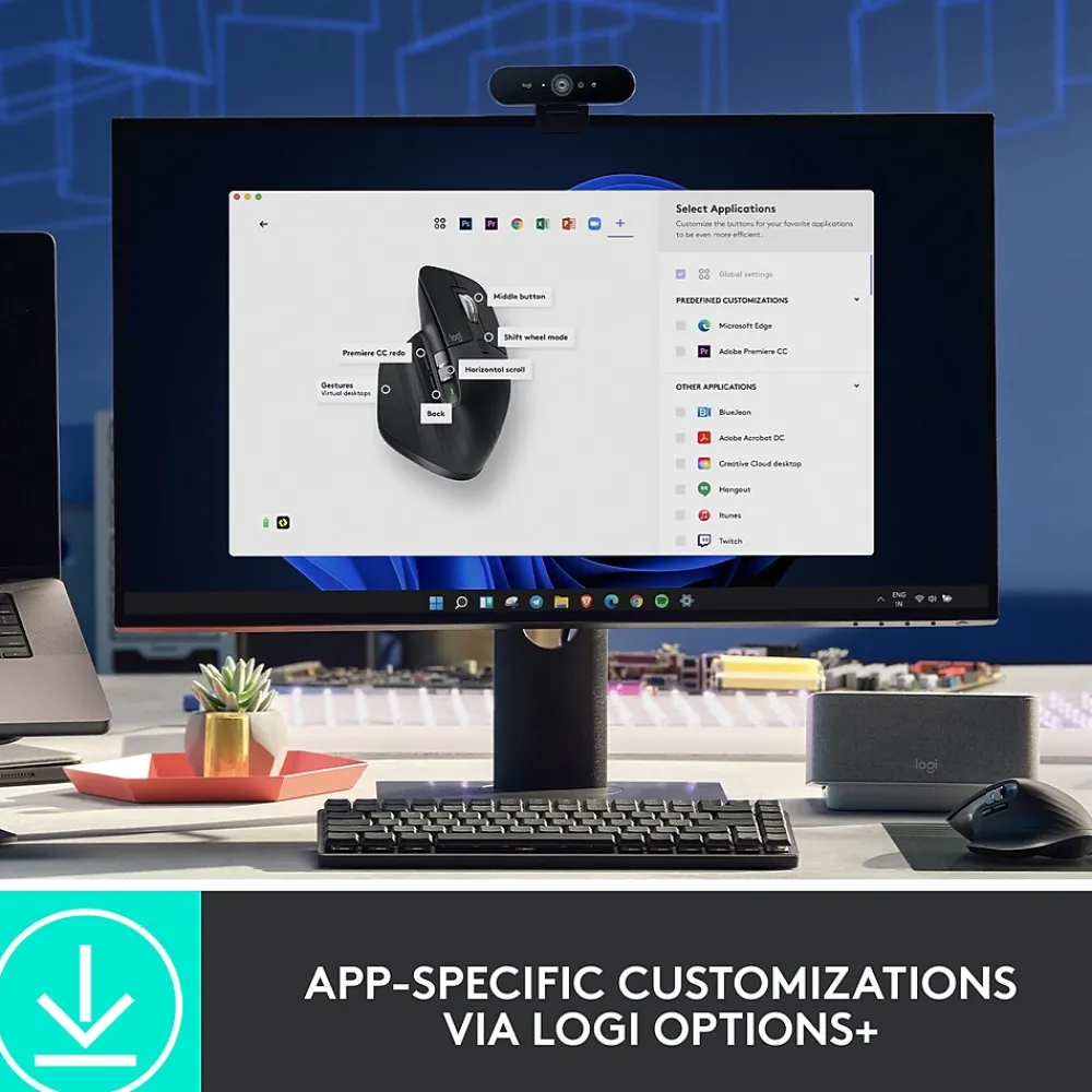 - Customize buttons, and optimize your workflow with app-specific profiles in the improved Logi Options+