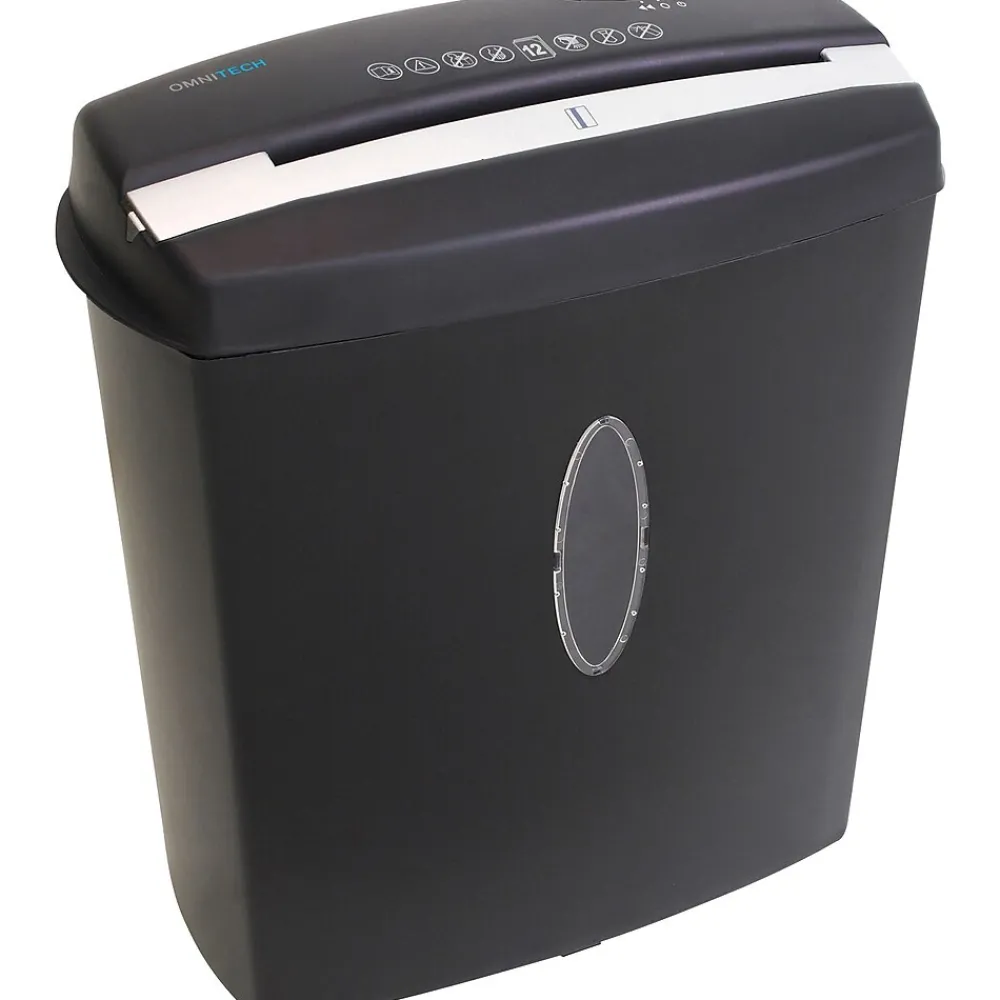 Quickly and efficiently shred paper and credit cards with the Omnitech 12-Sheet Cross-Cut Shredder.