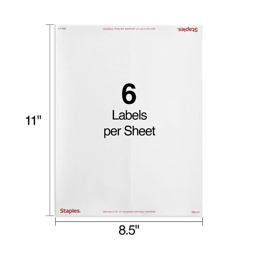 - Six labels per sheet, 250 sheets per pack; 1500 total labels