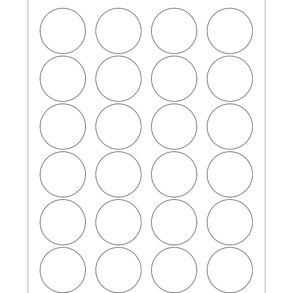 1.625″ White Circle Laser Labels. Use to create your own product or mailing labels. Labels work with both Laser and ink jet printers. Permanent adhesive. Labels stick to a variety of smooth surfaces including paper, corrugated, plastic, wood, glass and metal.