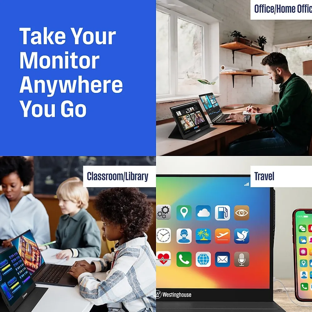 - TRAVEL FRIENDLY: Slim and compact, our portable monitor is perfect for work from home, business trips, and general travel setups. It comes with a magnetic protective cover that doubles as a monitor stand.