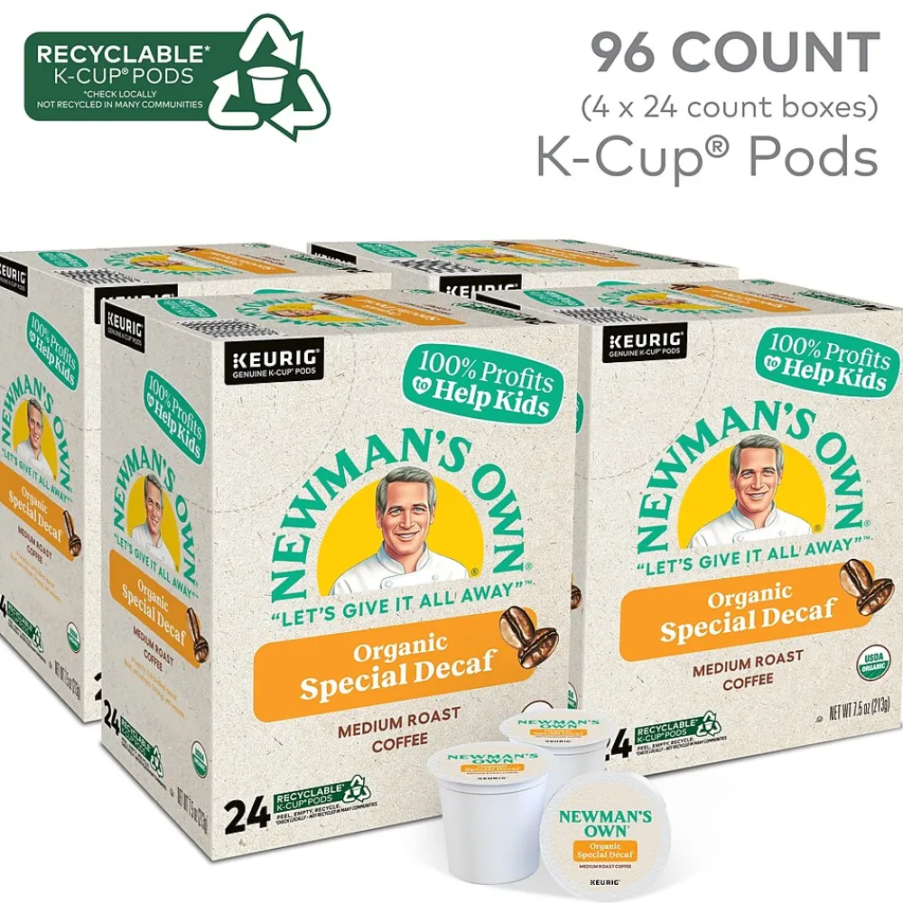 Want the great taste of Newman’s Own Organic coffee without the caffeine? Now you can with the Newman’s Own Organic Special Decaf, a decaffeinated, full-bodied blend of medium and dark roasts with a bold yet refined flavor and a strong yet smooth finish. The Newman’s Own Organic Special Blend Decaf delivers an inspired blend of medium-roasted Central American and darker-roasted Indonesian coffees for a rich and robust flavor with ample body that’s decaffeinated and 100% organic.