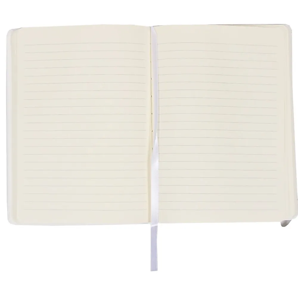 JamĀ® 5″ x 7″ Hardcover notebook in white color comes with elastic cover and features simple elastic band closure, handy pocket for protection. Notebook has smooth finish offers fashionable look.