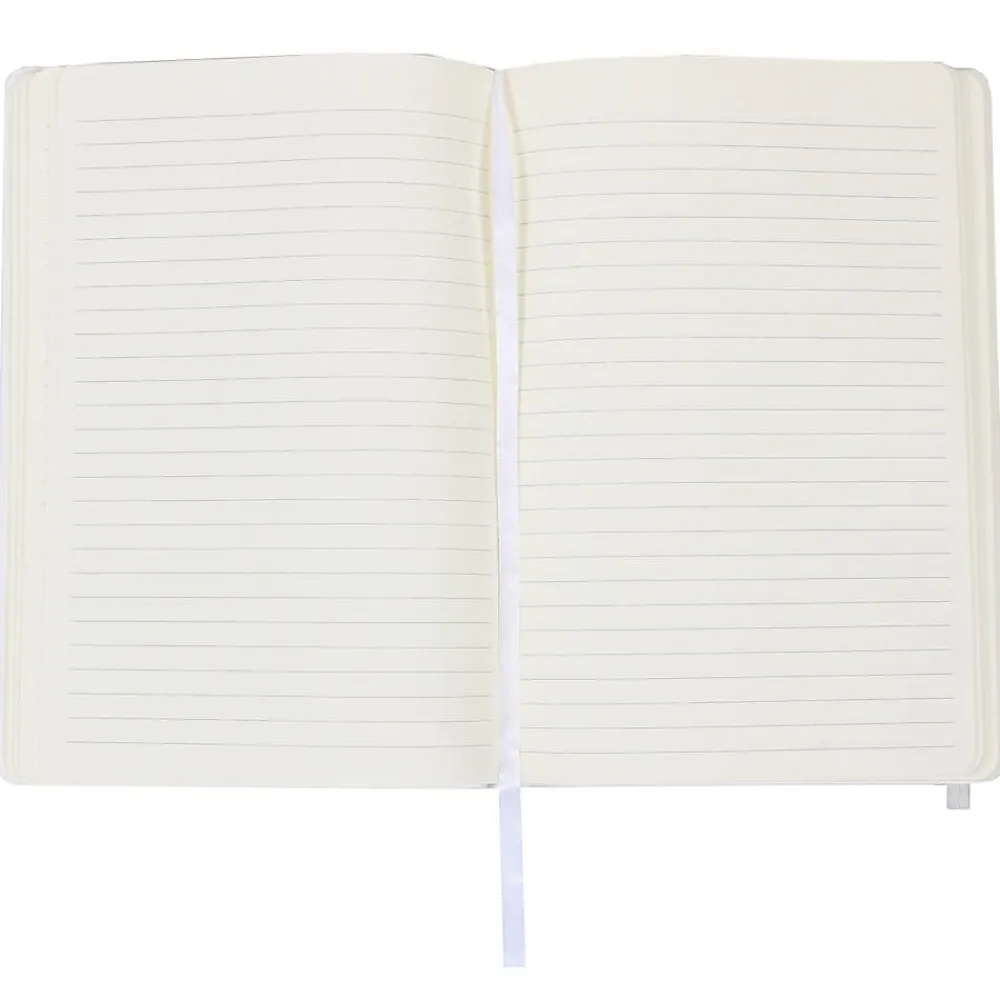 JamĀ® 5 7/8″ x 8 1/2″ Hardcover notebook in white color comes with elastic cover and features simple elastic band closure, handy pocket for protection. Notebook has smooth finish offers fashionable look.