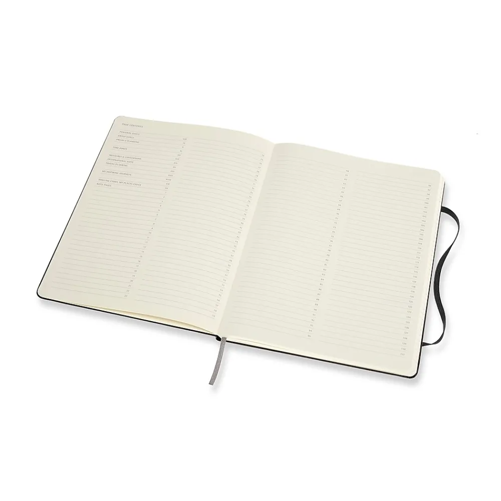 Improve productivity and track progress with this extra-large professional notebook. Numbered pages and dedicated space for project or travel planning enhance organization to meet deadlines, and an inner pocket of cardboard and fabric provides space to store loose pages. The notes pages and detachable to-do lists of this Moleskine professional notebook let you manage priorities or share ideas with colleagues.