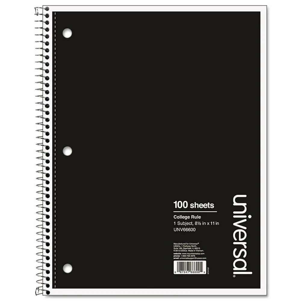 Notebooks|Universal Wirebound Notebook, 8.5 x 11, College Ruled, 100 Sheets, Black (UNV66600)