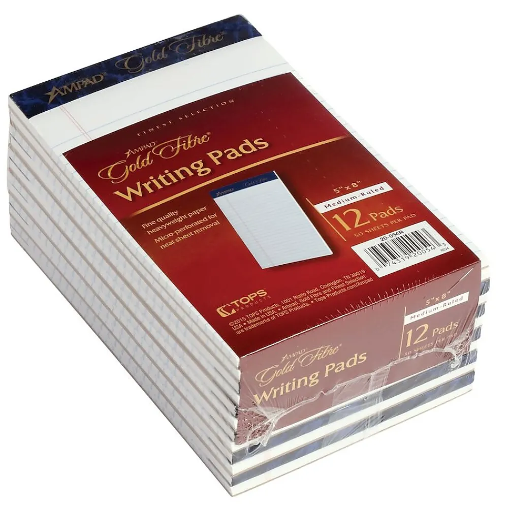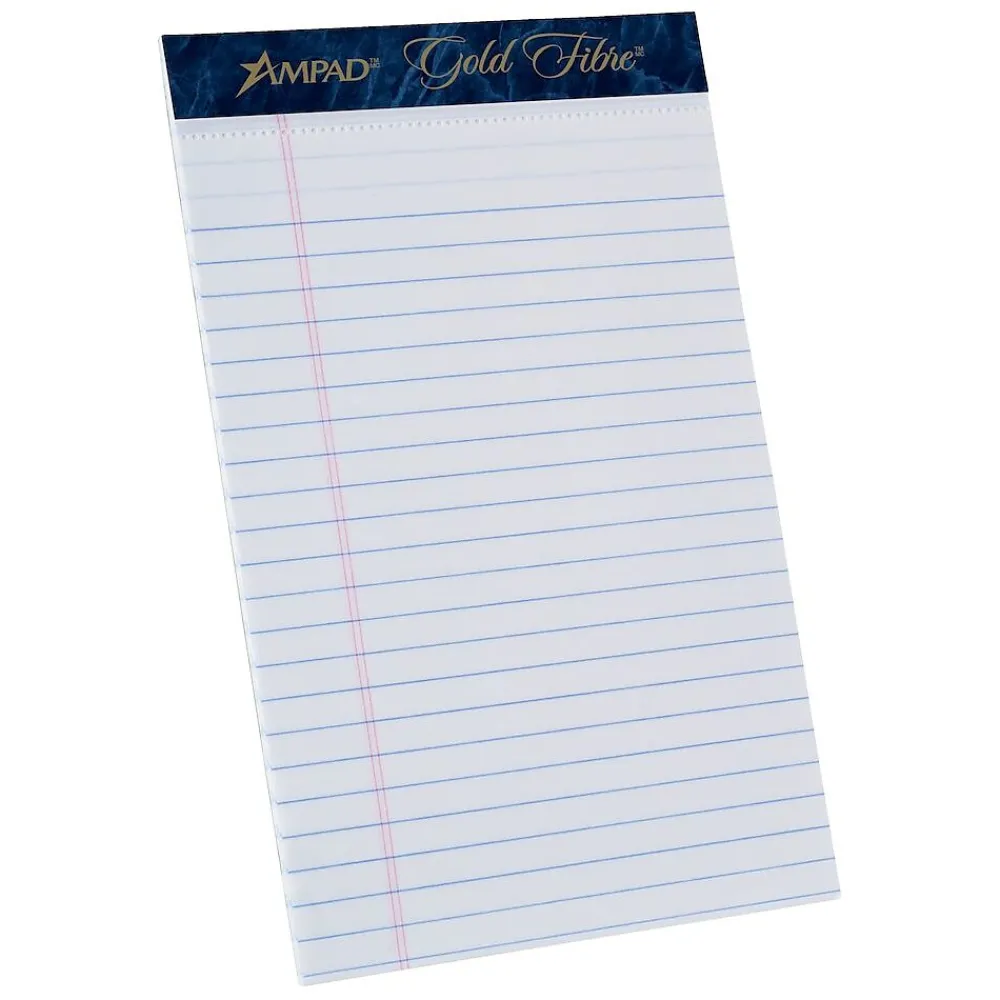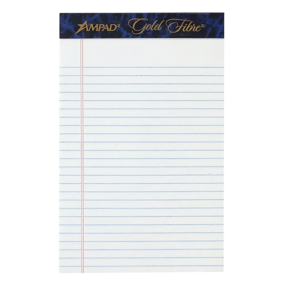 Create to-do lists and write notes on these college-ruled white perforated notepads. The college-ruled spacing makes these notepads ideal for individuals with larger handwriting, while the perforated edge ensures sheets are easy to tear out. Each page of these TOPS Gold Fibre college-ruled perforated notepads is printed with crisp lines that let writing stand out.