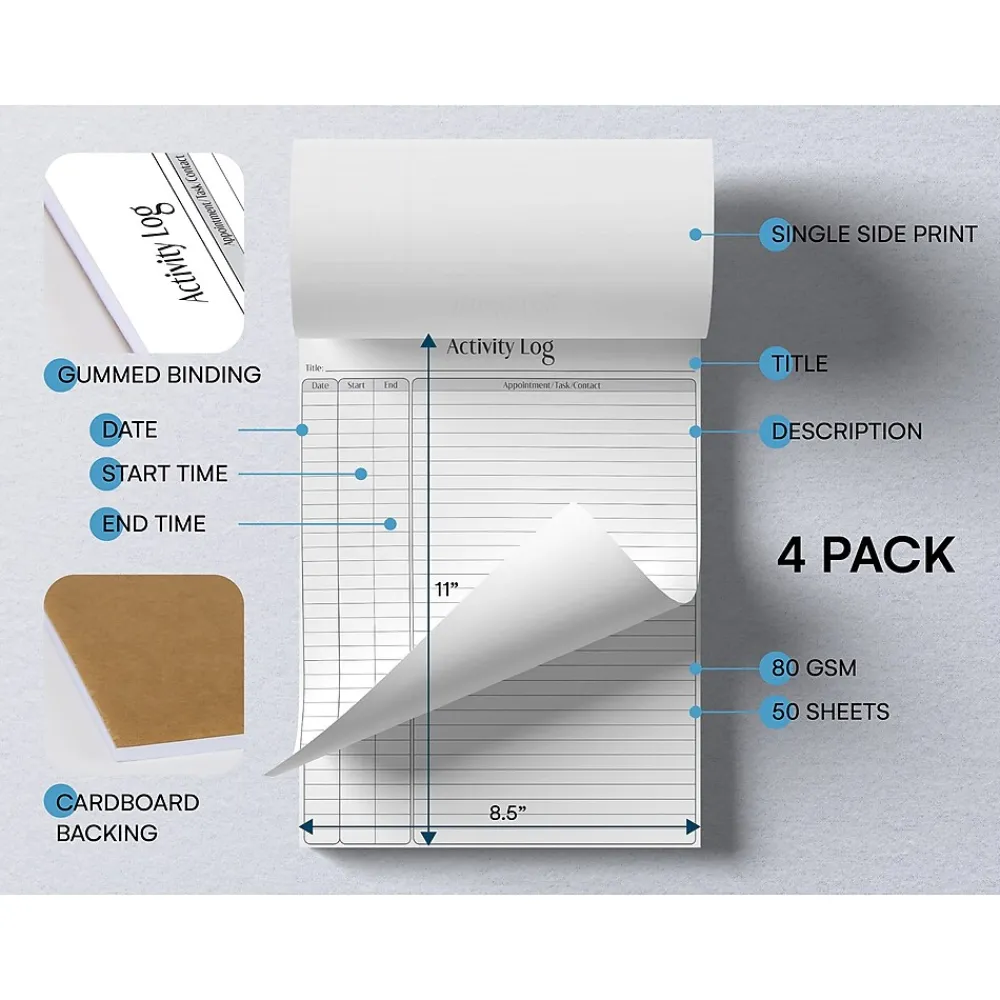 This Activity Log 50-sheet notepad by Better Office features thick sheets with an attractive and simple design. Its gummed top binding allows the 8.5″ x 11″ letter-size sheets to be easily torn off. Use it to keep track of all your goals, activities, deliverables, and projects.