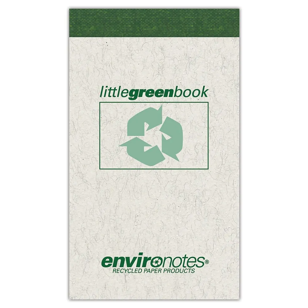 This handy little memo book has no wire and fits neatly in shirt pockets or pocketbooks. The smooth, white, 15 lb. recycled paper contains 30% post-consumer content and has narrow ruled lines. Covers are 20 pt grey mist recycled board. Each book is 3″ x 5″ and contains 60 sheets of writing paper. Each book is center sewn and tape bound along the 3″ (top) dimension.