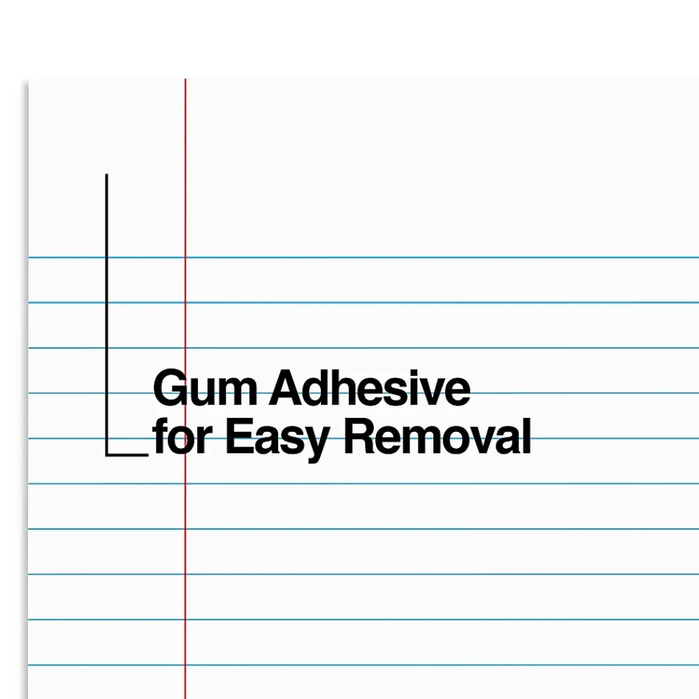 - Gum adhesive at top allows you to easily remove pages or quickly flip through